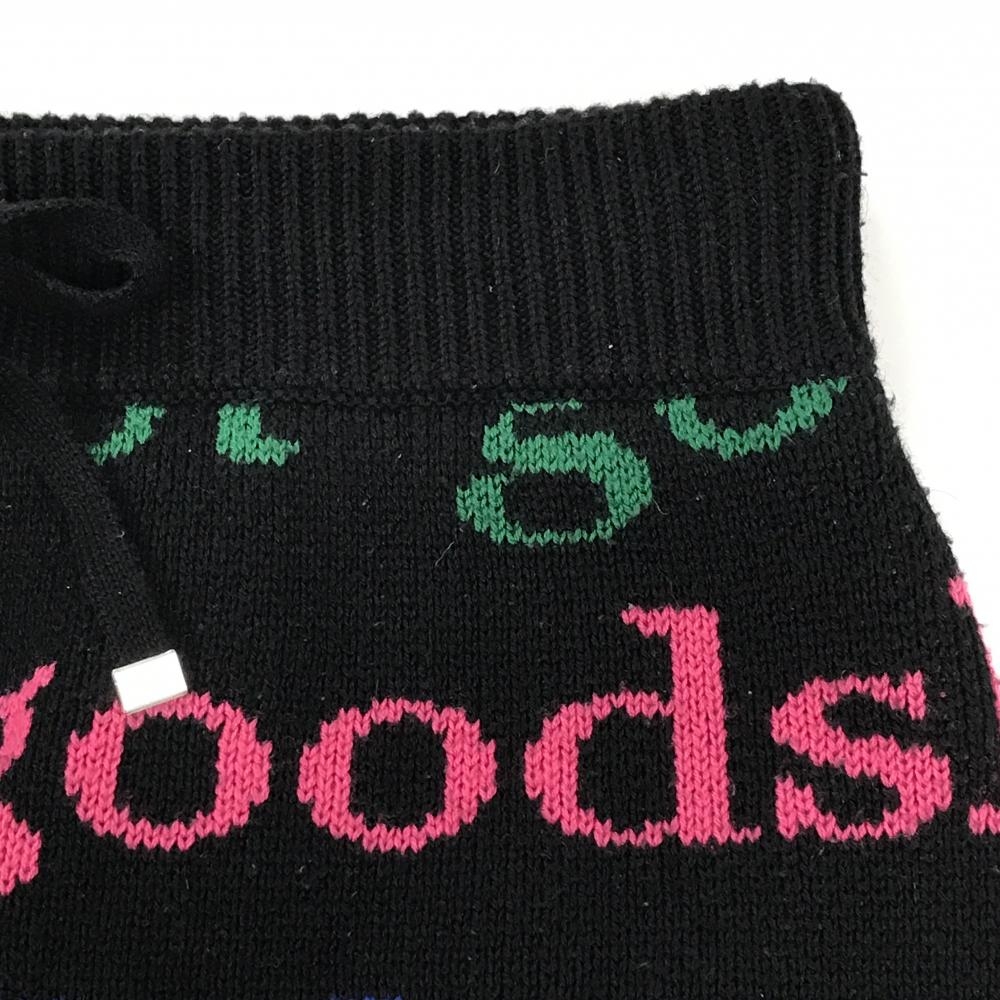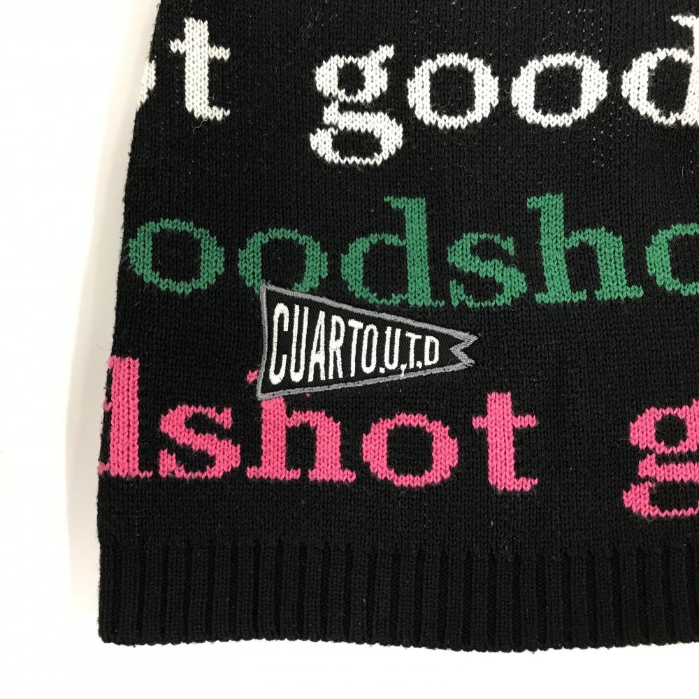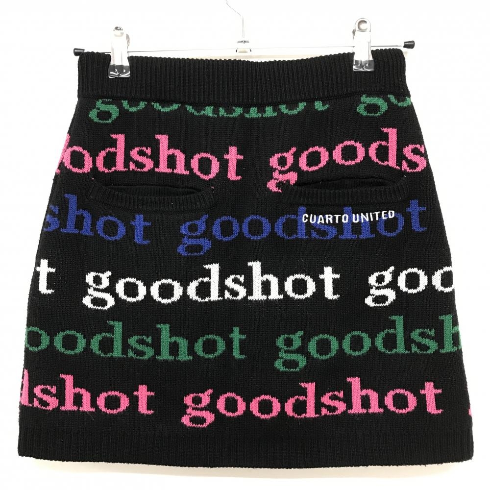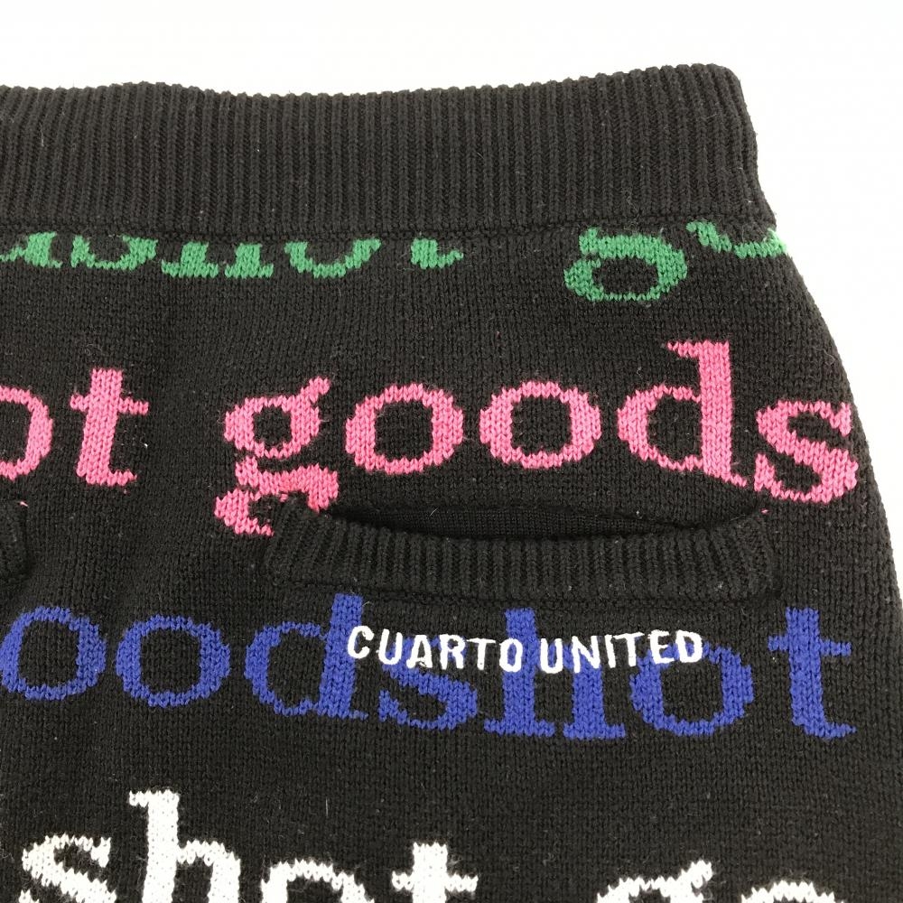 【超美品】クアルトユナイテッド ニットスカート 黒×マルチカラー 英字柄 ウール混 レディース S ゴルフウェア CUARTO UNITED