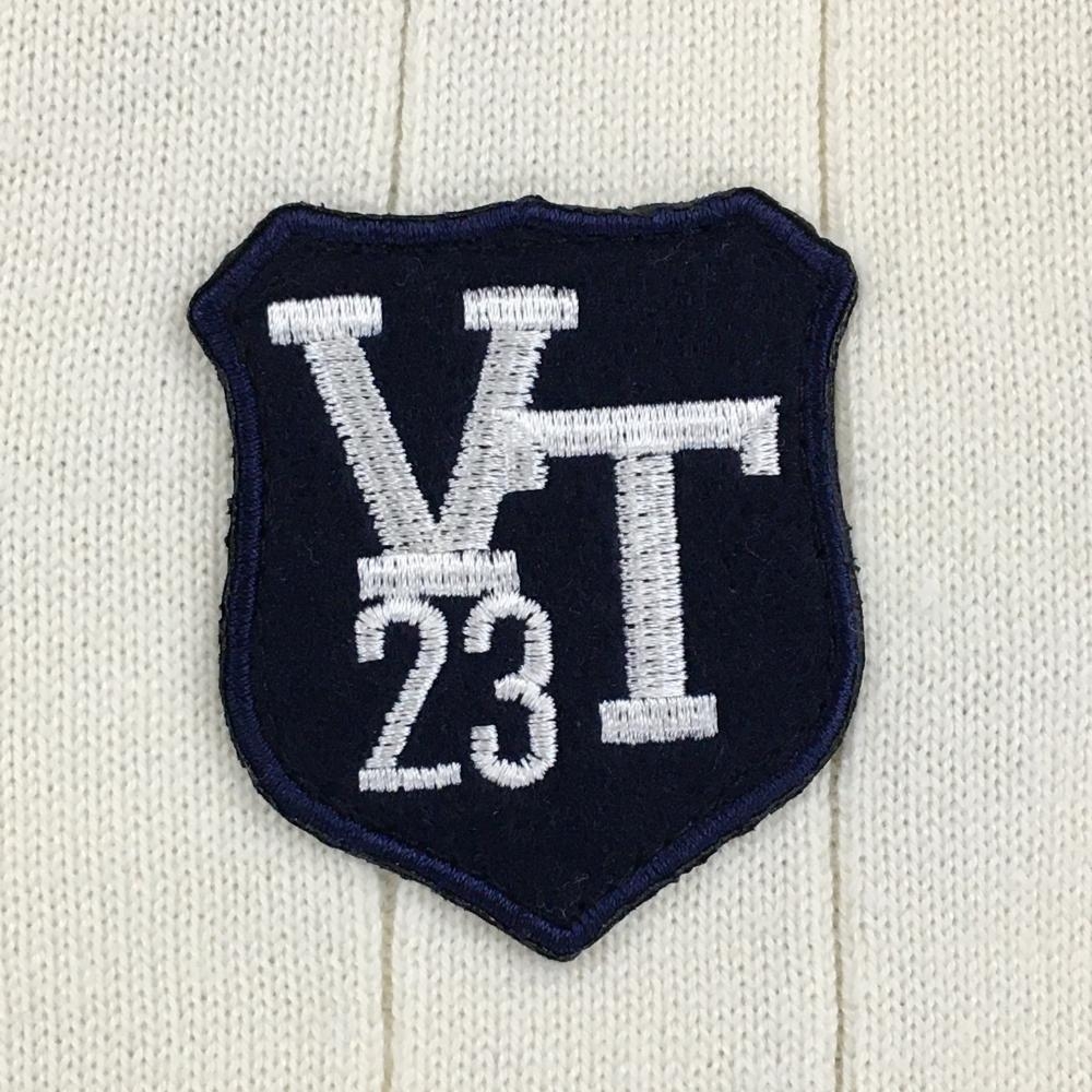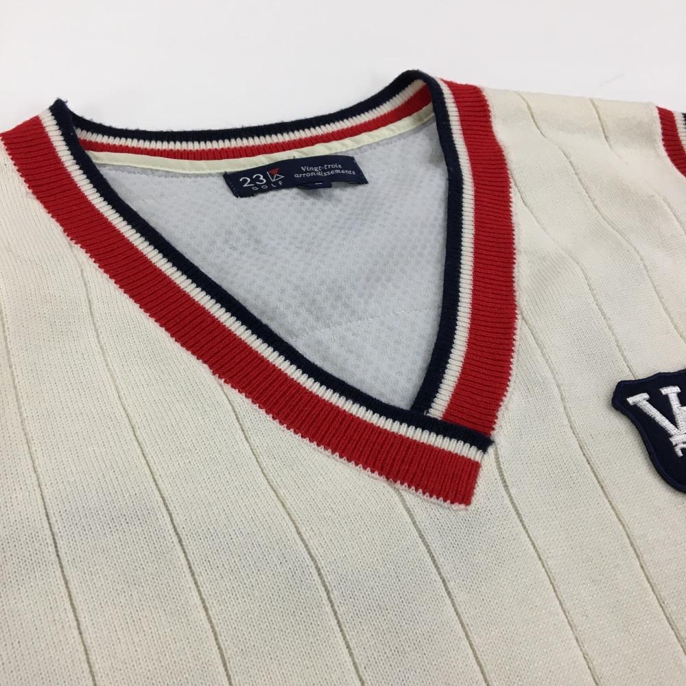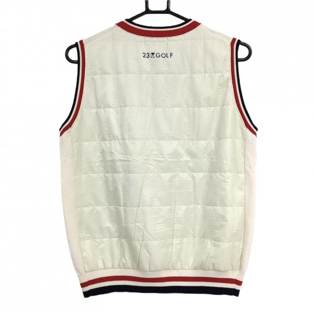 23区ゴルフ 中綿ベスト アイボリー×レッド Vネック 背面中綿 ロゴワッペン レディース Ⅱ(L) ゴルフウェア 23区