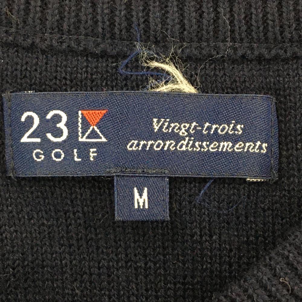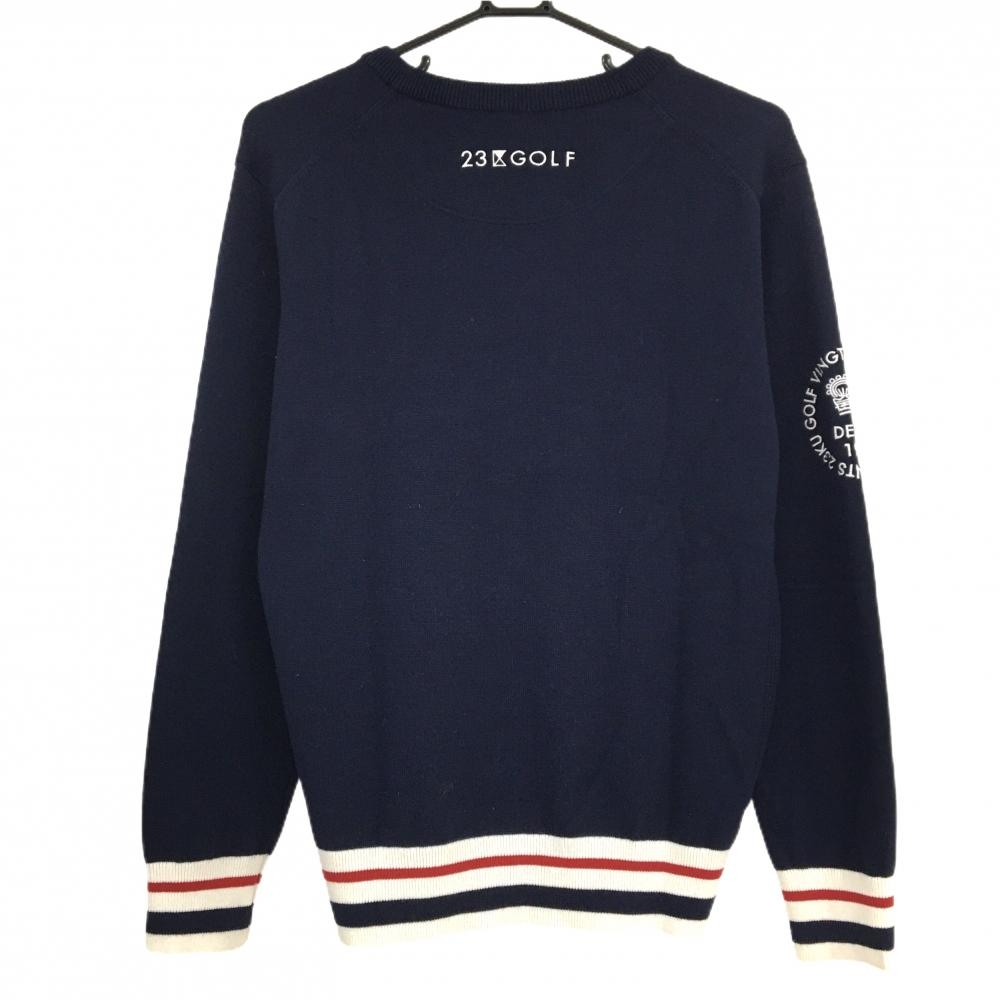 【超美品】23区ゴルフ セーター ネイビー×白 袖口裾ボーダー ウール混 ニット メンズ M ゴルフウェア 23区