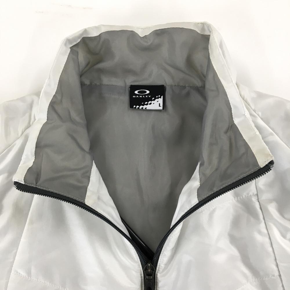 オークリー 2WAY中綿ジャケット 白 ロゴダークグレー 袖着脱可 メンズ L ゴルフウェア Oakley