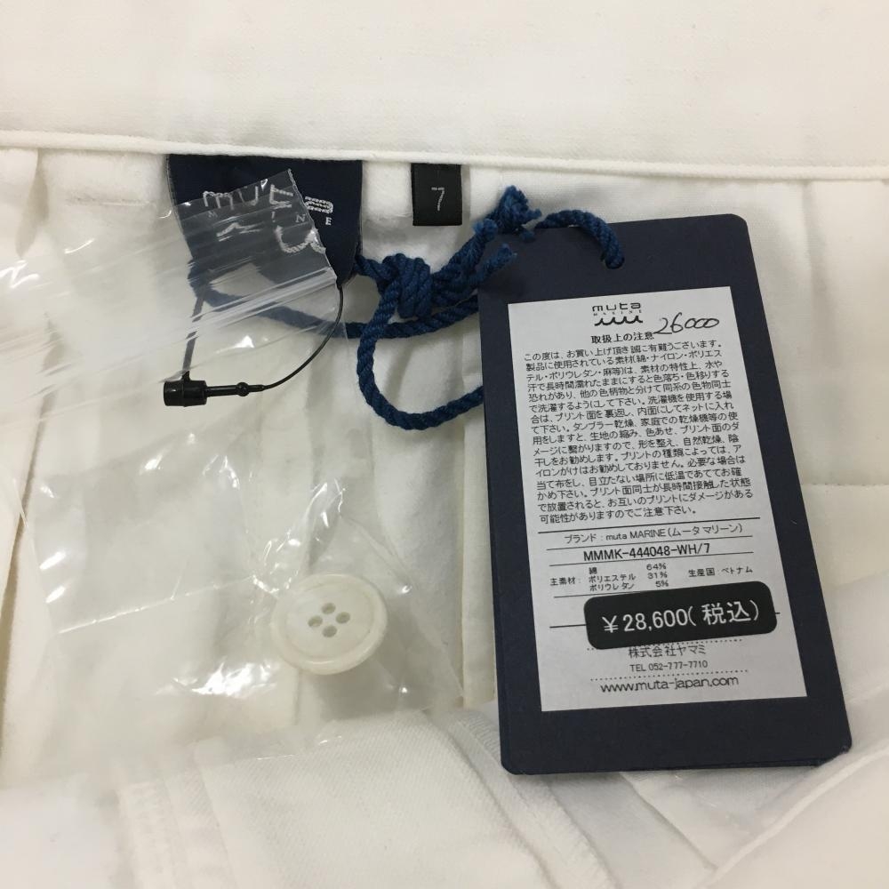 【新品】ムータマリン パンツ 白×黒 サイドライン 裏微起毛 ストレッチ メンズ 7(XL) ゴルフウェア 2024年モデル muta