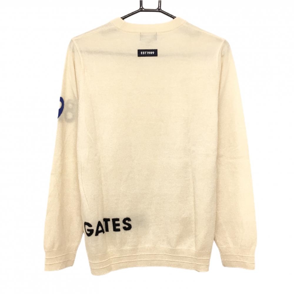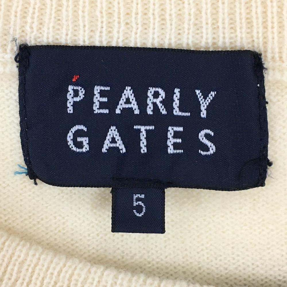 【美品】パーリーゲイツ セーター アイボリー×黒 ニット ウール100% 裾ロゴ メンズ 5(L) ゴルフウェア PEARLY GATES