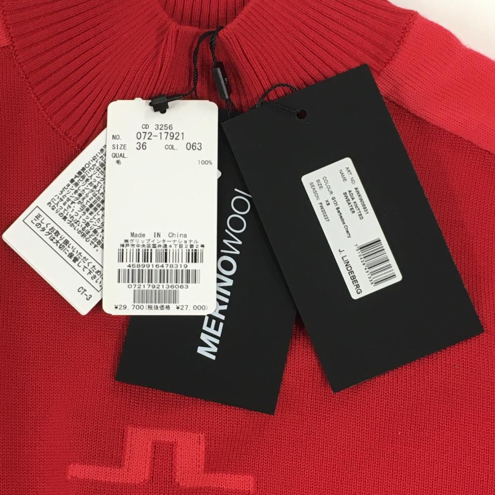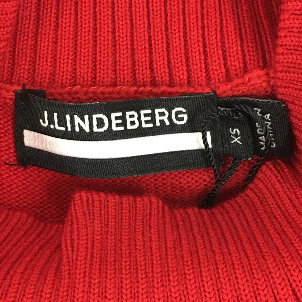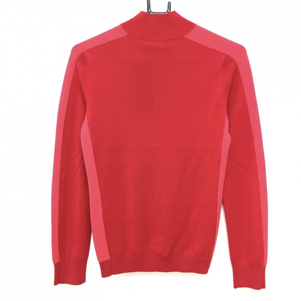 【新品】ジェイリンドバーグ ハイネックセーター レッド×ピンク サイド・袖ライン ウール100% レディース XS ゴルフウェア J.LINDEBERG