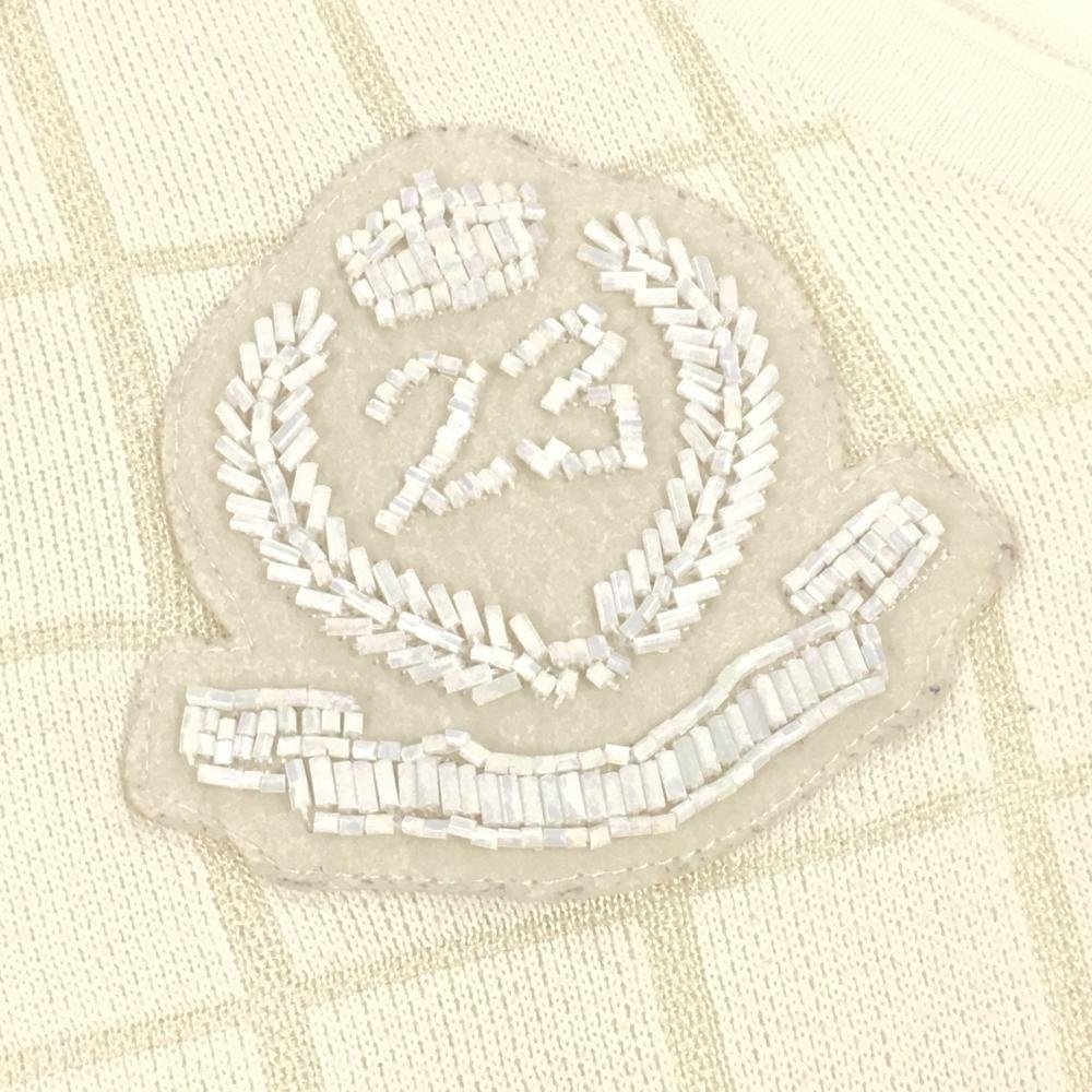 【美品】23区スポーツ セーター 白 前身頃格子編み ニット Vネック ビーズロゴ レディース I(M) ゴルフウェア 23区