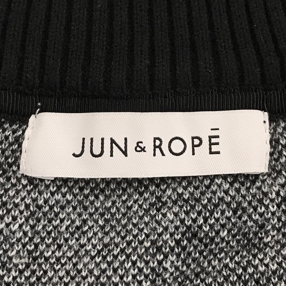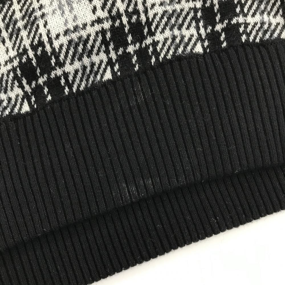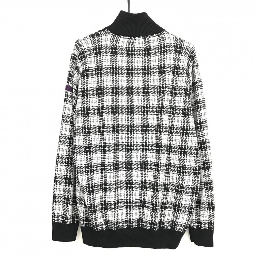 【美品】ジュンアンドロペ ハイネックセーター 白×黒 チェック ニット ウール混 ハーフジップ メンズ L ゴルフウェア JUN&ROPE
