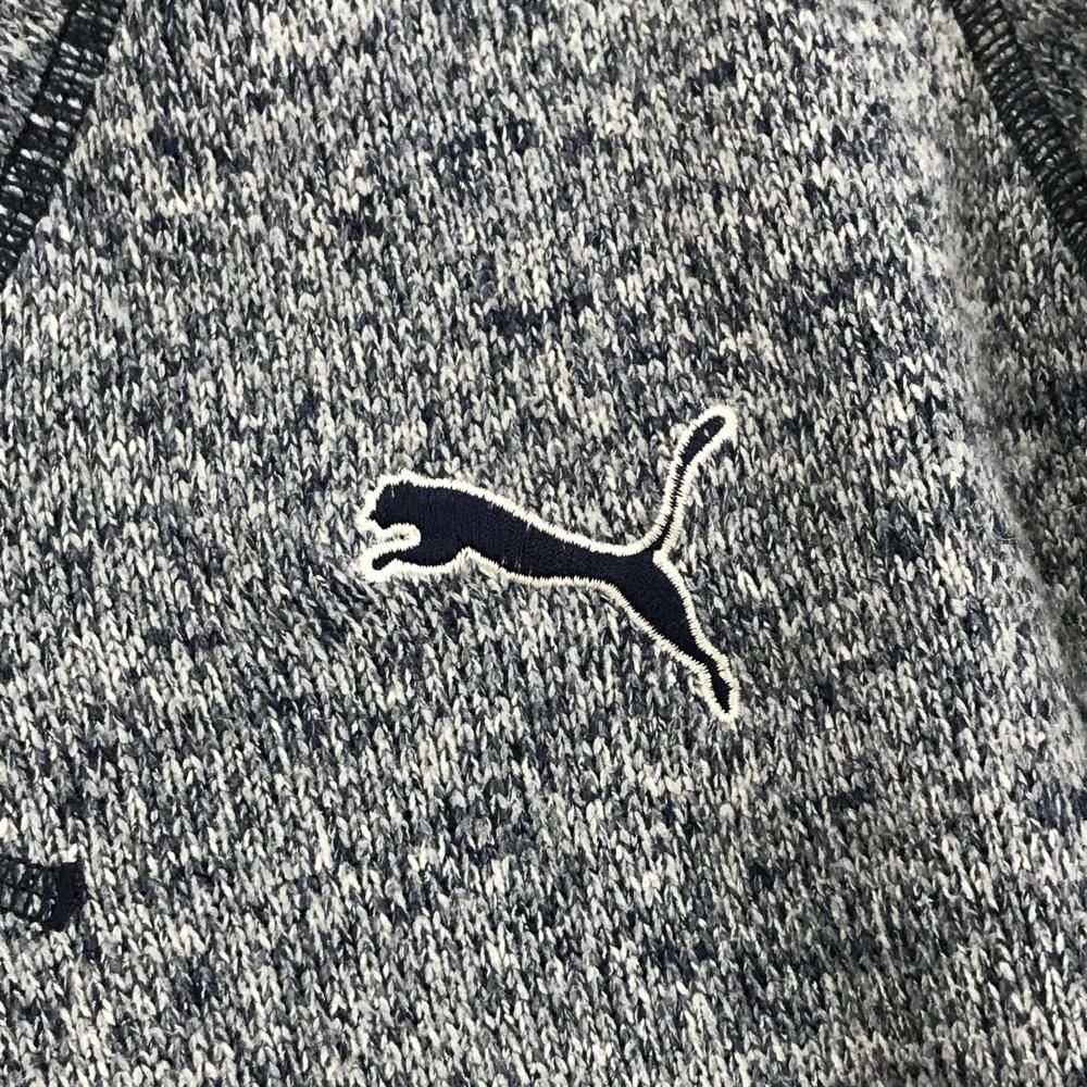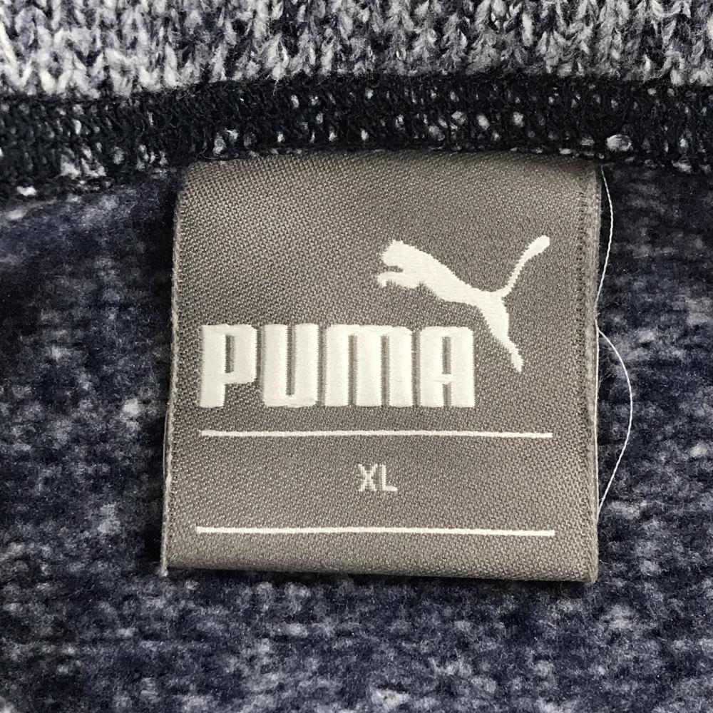 【美品】プーマ セーター 杢ネイビー ニット 裏起毛 Vネック メンズ XL ゴルフウェア PUMA