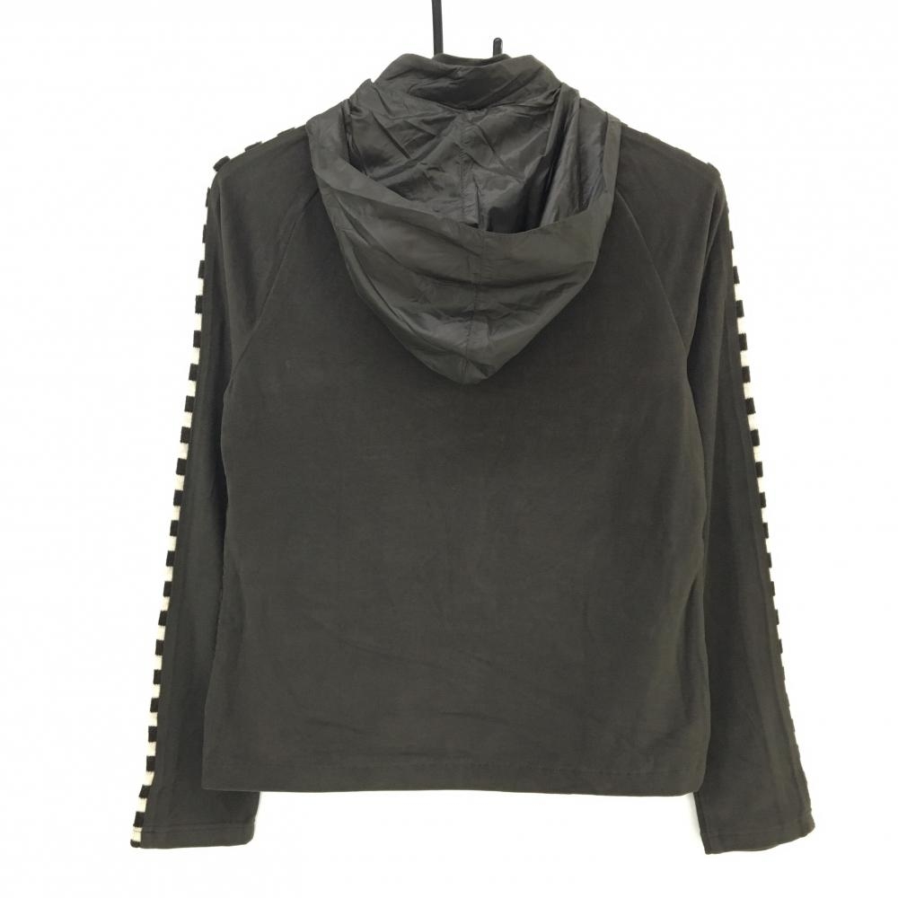 【美品】ピッコーネ 長袖ハイネックシャツ ブラウン 異素材切替 袖ニットボーダー フード着脱可 レディース 0(S) ゴルフウェア PICONE