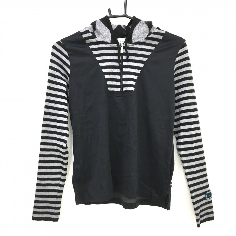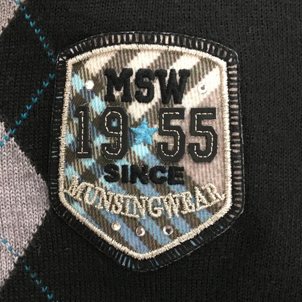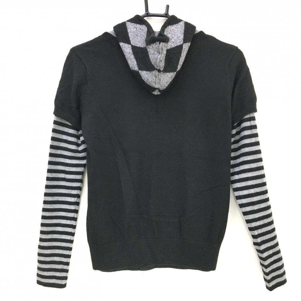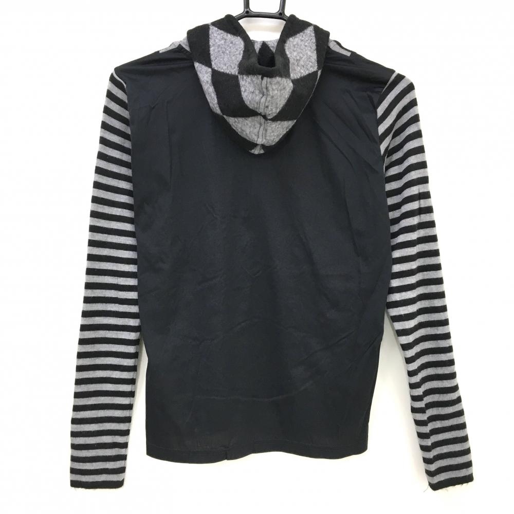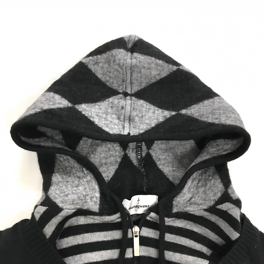 マンシングウェア 2WAYセーター 黒×グレー 前グレンチェック 半袖ニット 異素材インナーパーカー レディース M ゴルフウェア Munsingwear