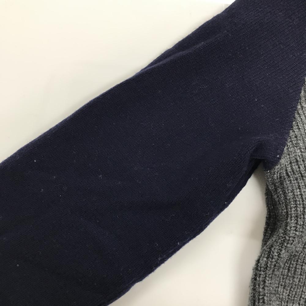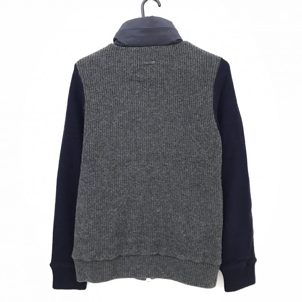 【美品】マスターバニー ニットジャケット 杢グレー×ネイビー ネック異素材 ウール混 メンズ 4(M) ゴルフウェア MASTER BUNNY EDITION