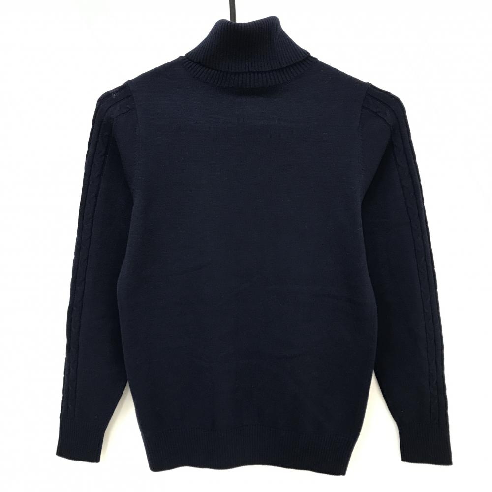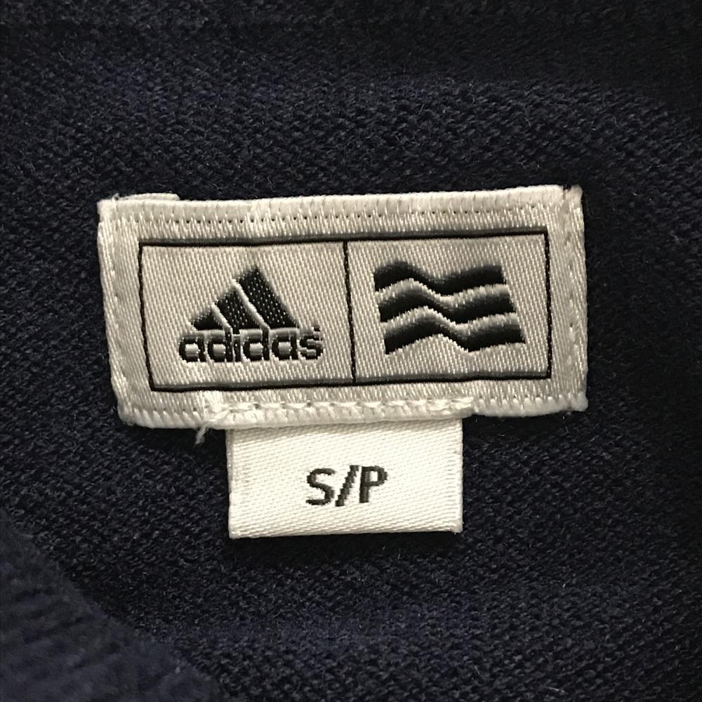 【超美品】アディダス タートルネックセーター ネイビー×白 胸元ロゴ ウール混 ニット レディース S/P ゴルフウェア adidas