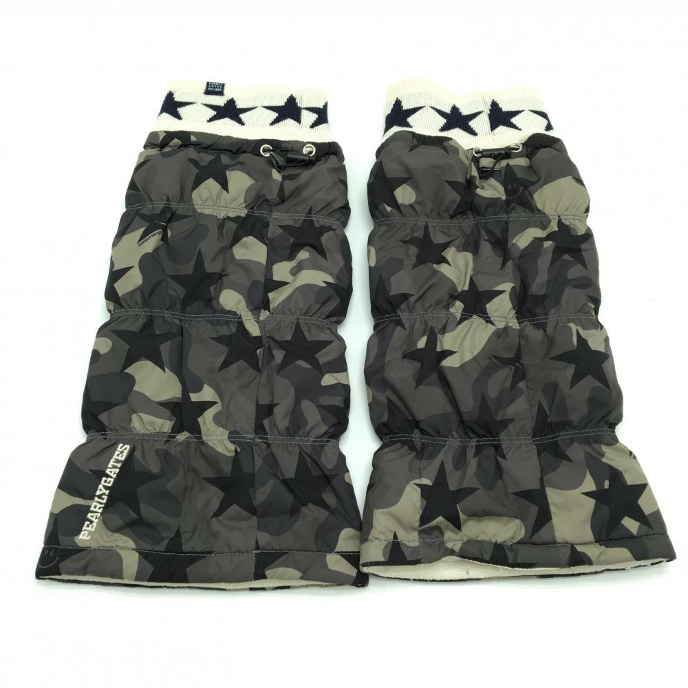 【美品】パーリーゲイツ レッグウォーマー グレー×黒 星柄 裏フリース レディース ゴルフウェア PEARLY GATES