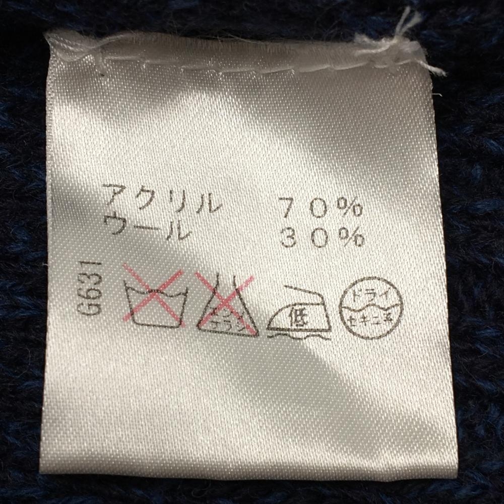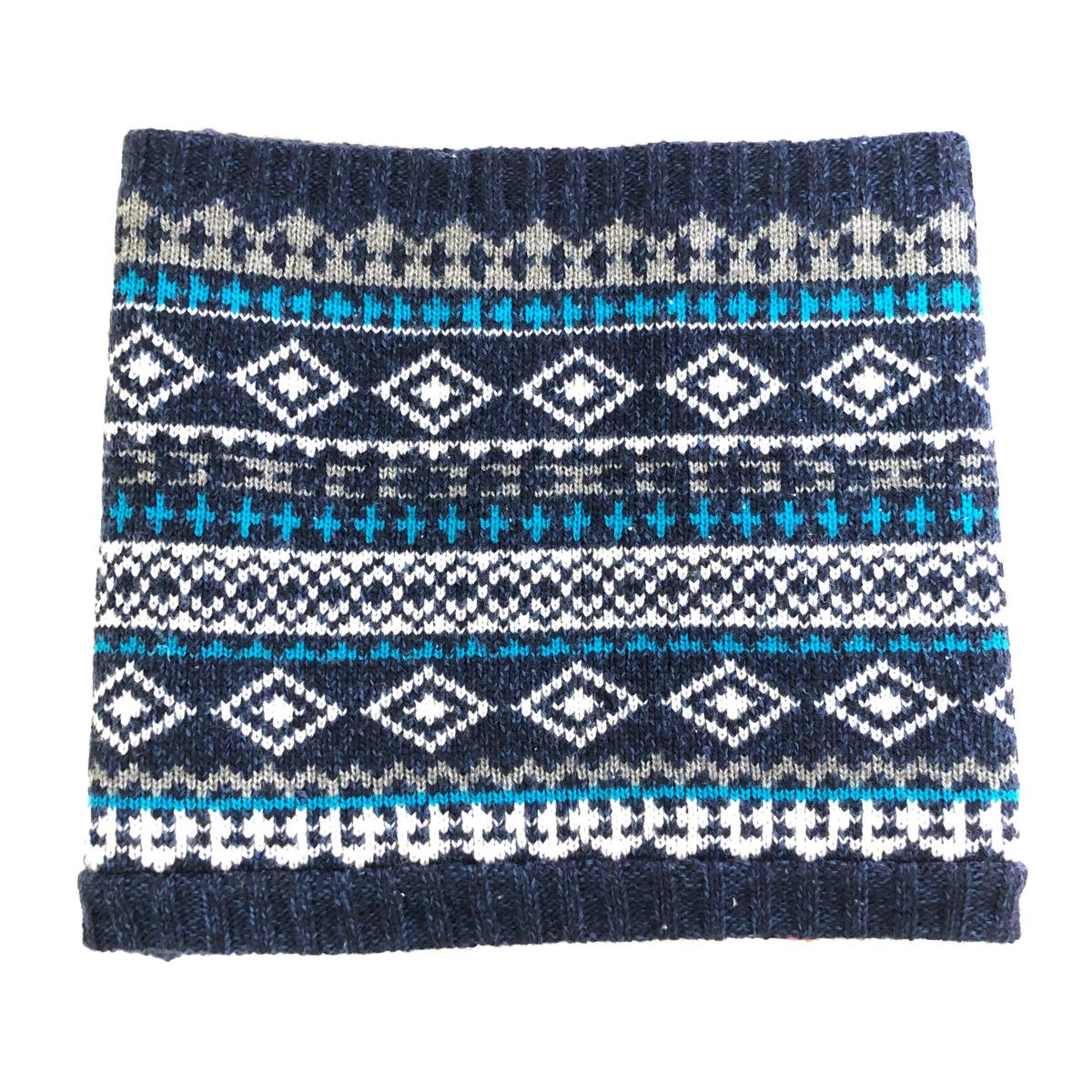 【超美品】ロサーセン ニットネックウォーマー ネイビー×白 総柄 ウール混 00 ゴルフウェア Rosasen