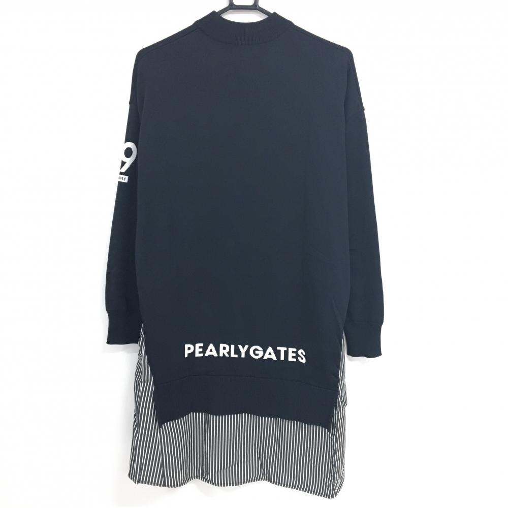 【超美品】パーリーゲイツ ハイネックワンピース ネイビー×白 上部ニット 裾ストライプ レディース 1(M) ゴルフウェア PEARLY GATES
