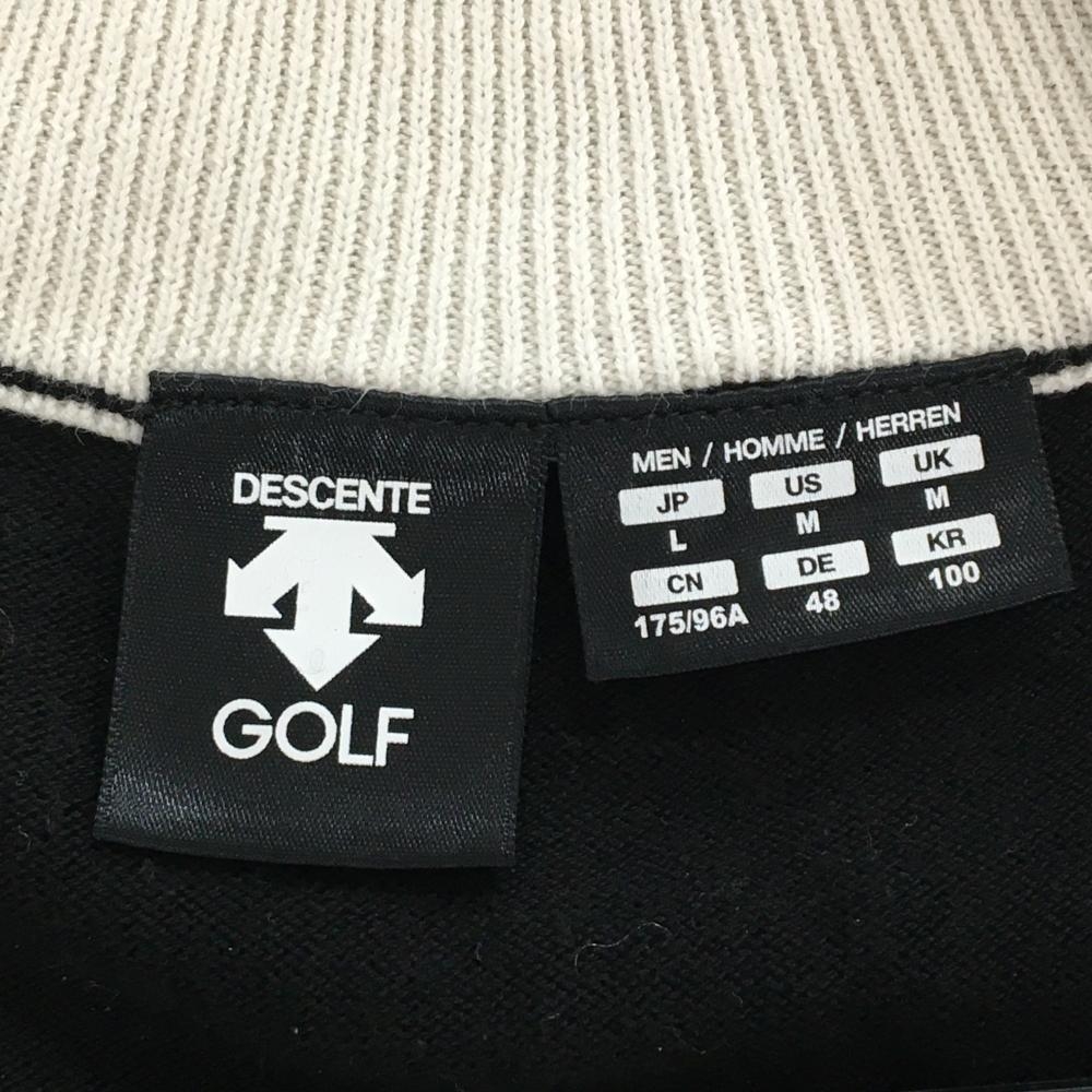 デサントゴルフ ハイネックセーター 黒×白 肩ロゴ ハーフジップ ニット メンズ L ゴルフウェア DESCENTE
