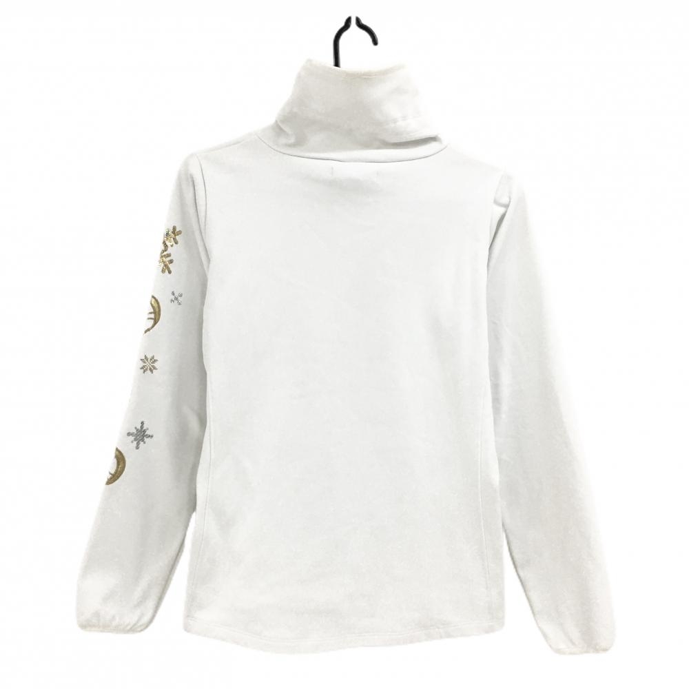 ダンスウィズドラゴン 長袖ハイネックシャツ 白×ゴールド スパンコール 裏起毛 レディース 2(M) ゴルフウェア Dance With Dragon