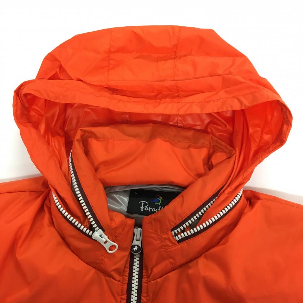 パラディーゾ ダウンジャケット オレンジ ロゴ刺しゅう フード収納可 メンズ L ゴルフウェア Paradiso