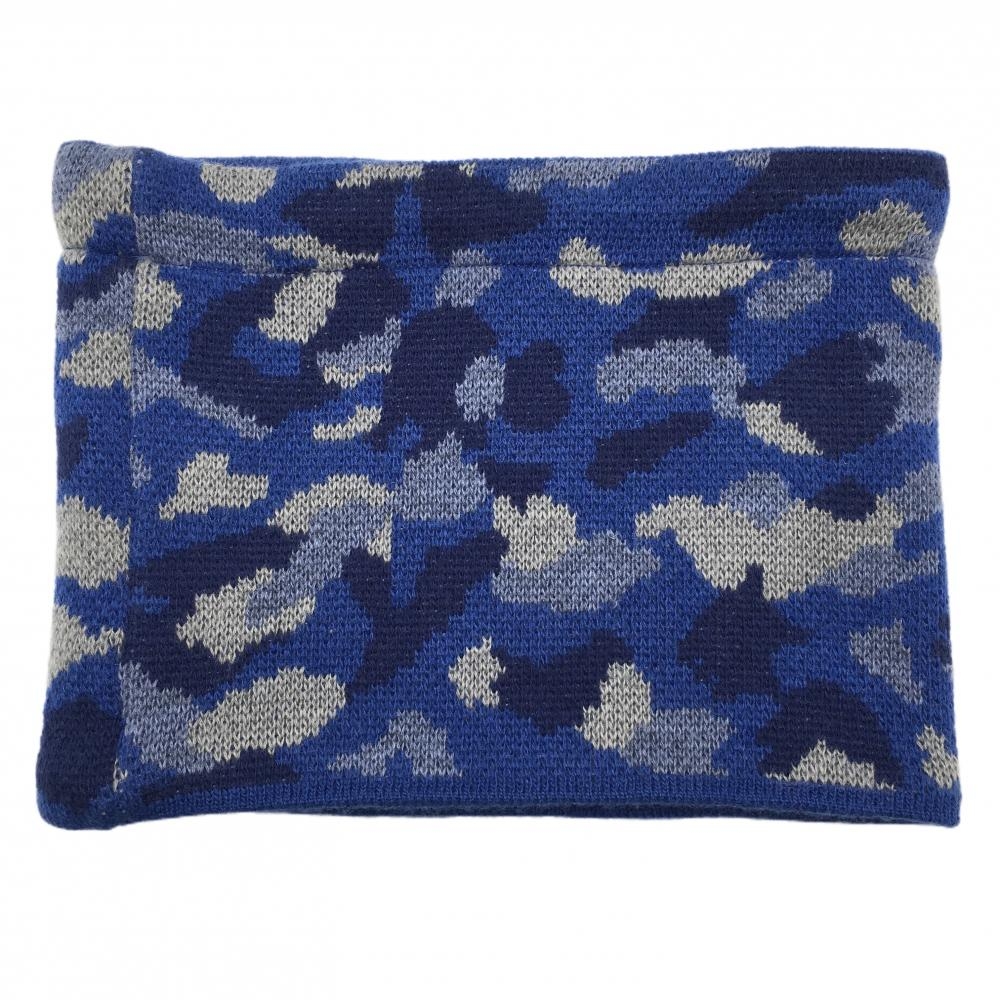 【超美品】ロサーセン リバーシブルネックウォーマー ブルー×ネイビー 迷彩 カモフラ 裏フリース ニット 00 ゴルフウェア Rosasen