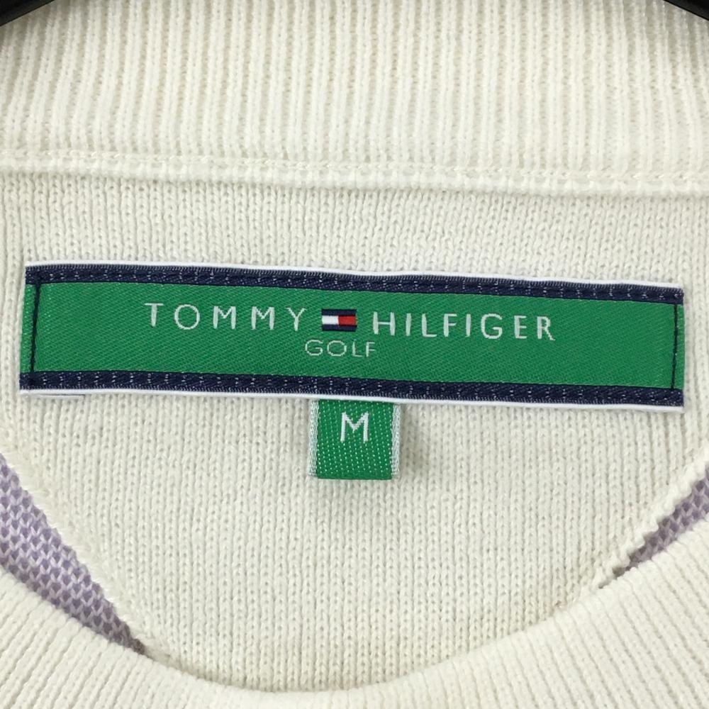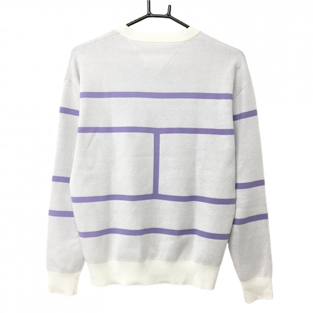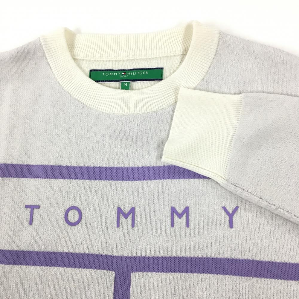 【超美品】トミーヒルフィガーゴルフ セーター 白×パープル フロントロゴ レディース M ゴルフウェア Tommy Hilfiger Golf
