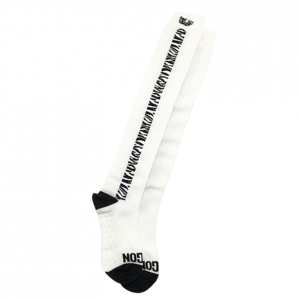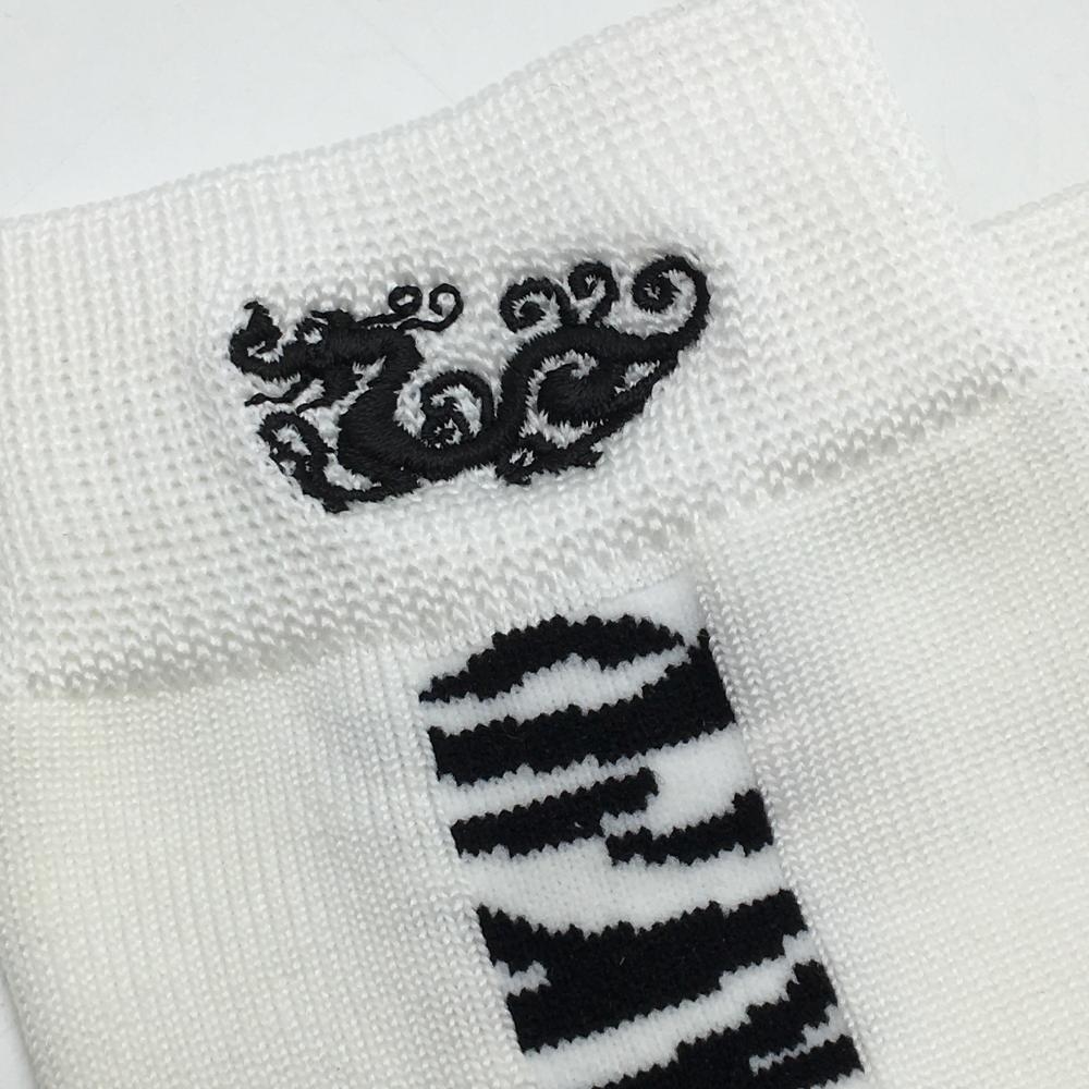 【未使用品】ダンスウィズドラゴン ニーハイソックス 白×黒 ゼブラ柄ライン レディース ゴルフウェア Dance With Dragon
