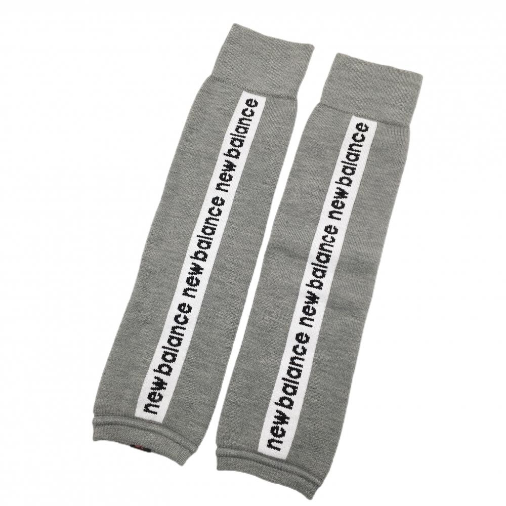 【超美品】ニューバランスゴルフ ニットレッグウォーマー グレー×白 ロゴライン 裏パイル レディース ゴルフウェア New Balance