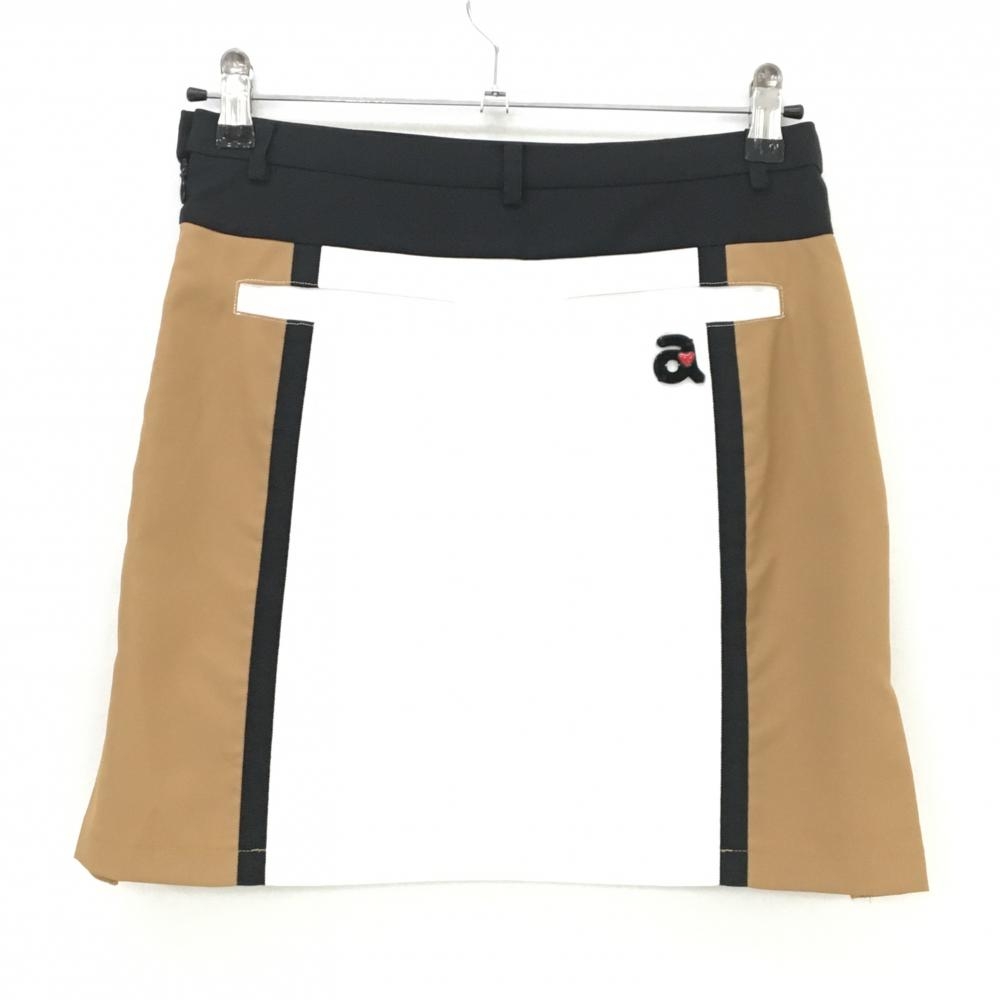 【美品】アルチビオ スカート 白×ブラウン×黒 ロゴワッペン ロゴしわ レディース 38(M) ゴルフウェア archivio