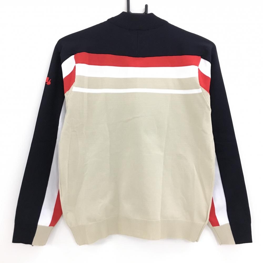 【新品】フィッチェゴルフ ニットジャケット ベージュ×黒 上部ライン 吸汗速乾 レディース L ゴルフウェア FICCE GOLF
