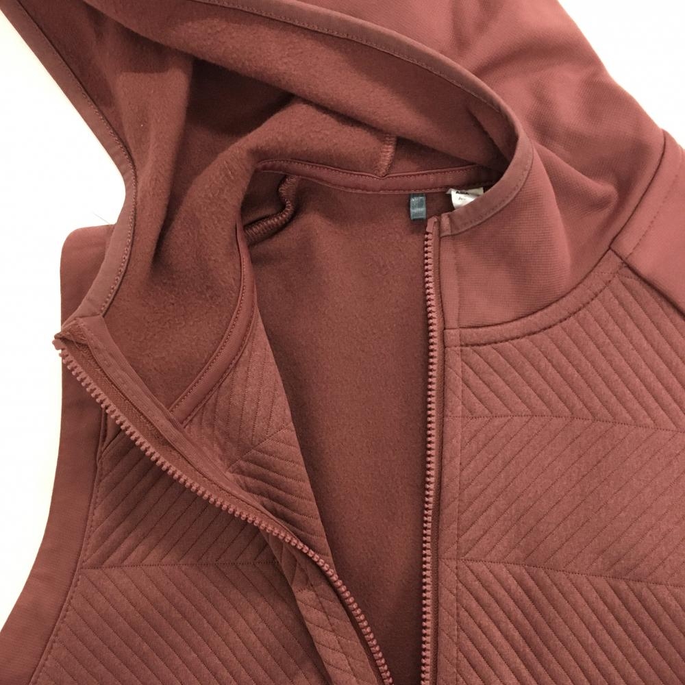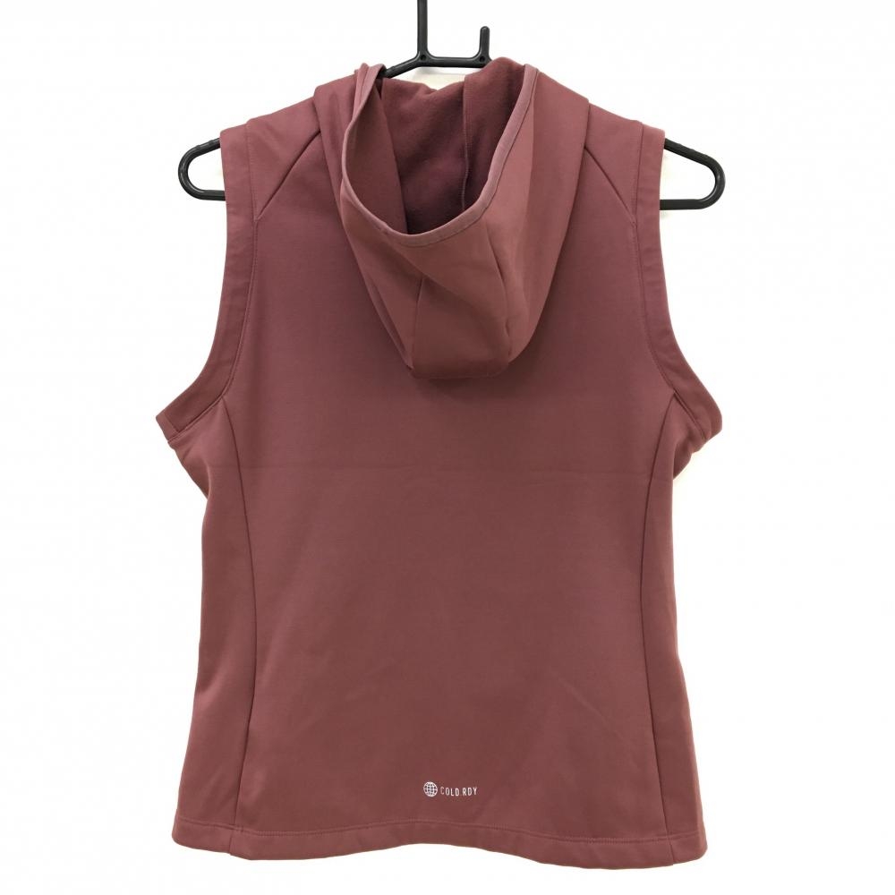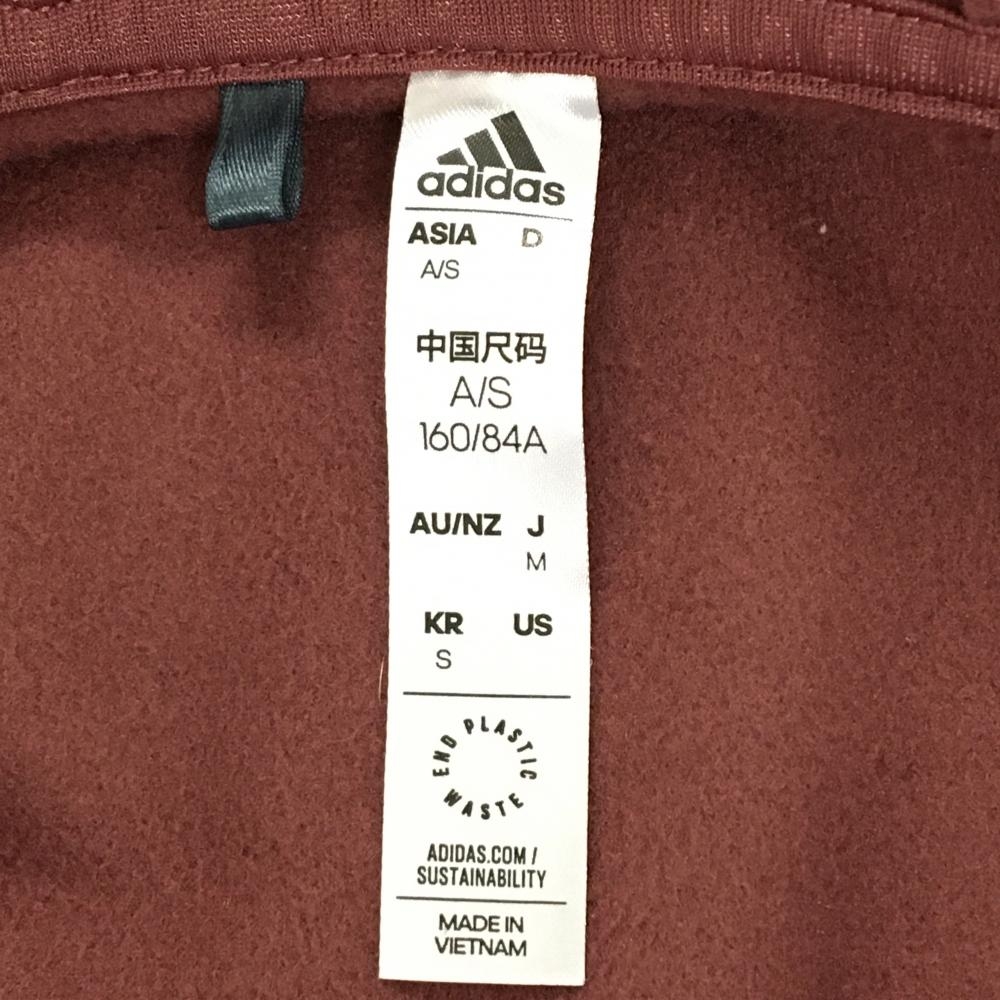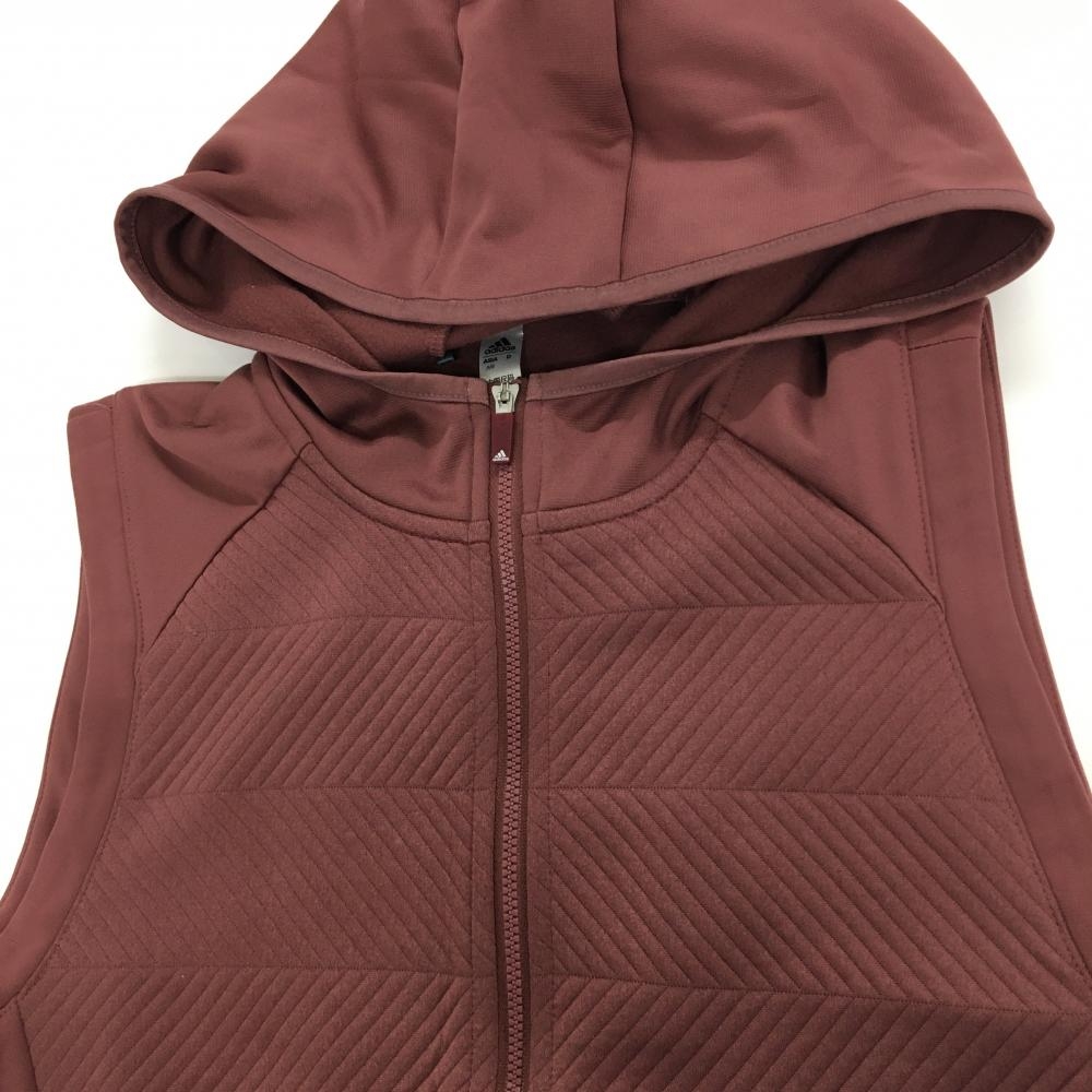 【美品】アディダス アウターベスト ボルドー 地模様 フード付き 裏起毛 レディース M ゴルフウェア adidas