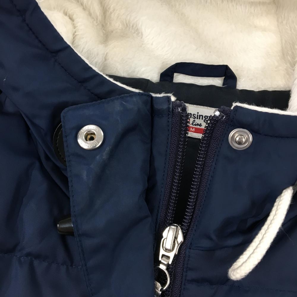 マンシングウェア フード付きダウンジャケット ネイビー×白 フード内側ボア レディース M ゴルフウェア Munsingwear