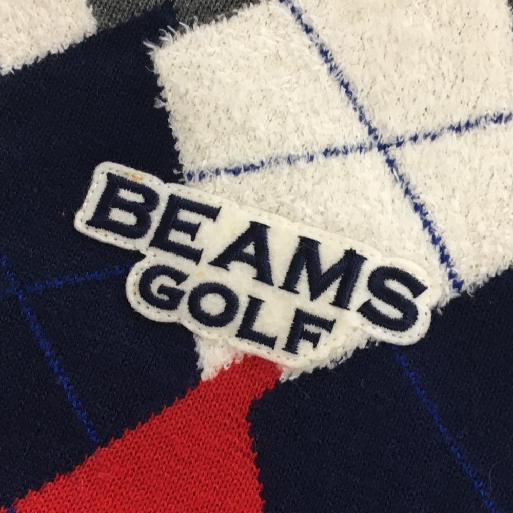 ビームスゴルフ セーター グレー×ネイビー 前面アーガイル 裏地付 ウール混 ニット メンズ L ゴルフウェア BEAMS GOLF