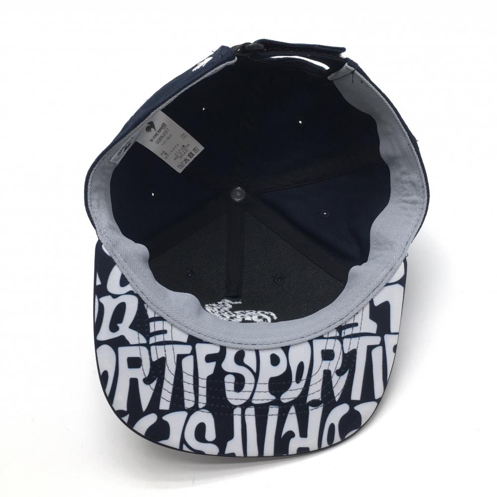 【美品】ルコックゴルフ フラットキャップ ネイビー×白 つば裏英字総柄 F(57-59cm) ゴルフウェア 2023年モデル le coq sportif