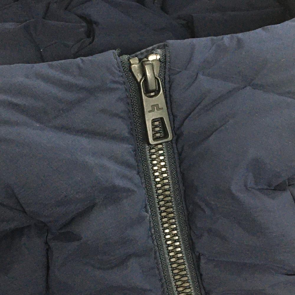 【美品】ジェイリンドバーグ ダウンジャケット ネイビー フード付 ダウン90% フェザー10% レディース S ゴルフウェア J.LINDEBERG