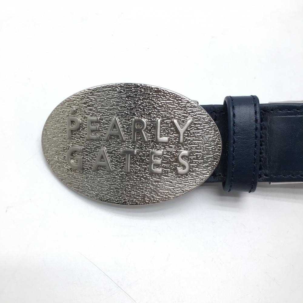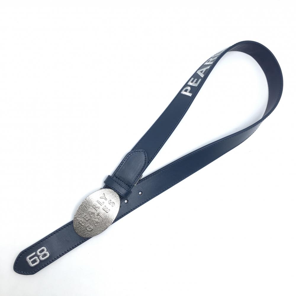 【美品】パーリーゲイツ トップ式ベルト ネイビー×シルバー 30周年 シルバーロゴバックル レディース ゴルフウェア PEARLY GATES