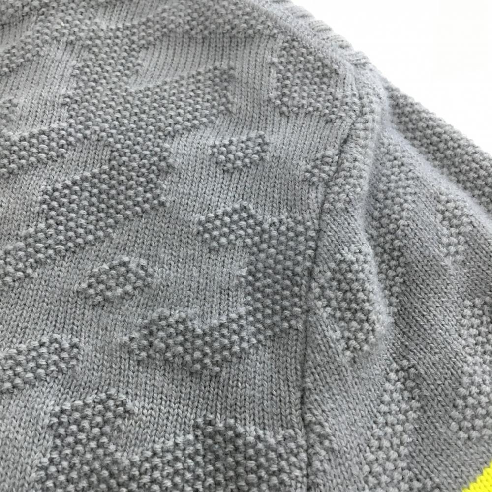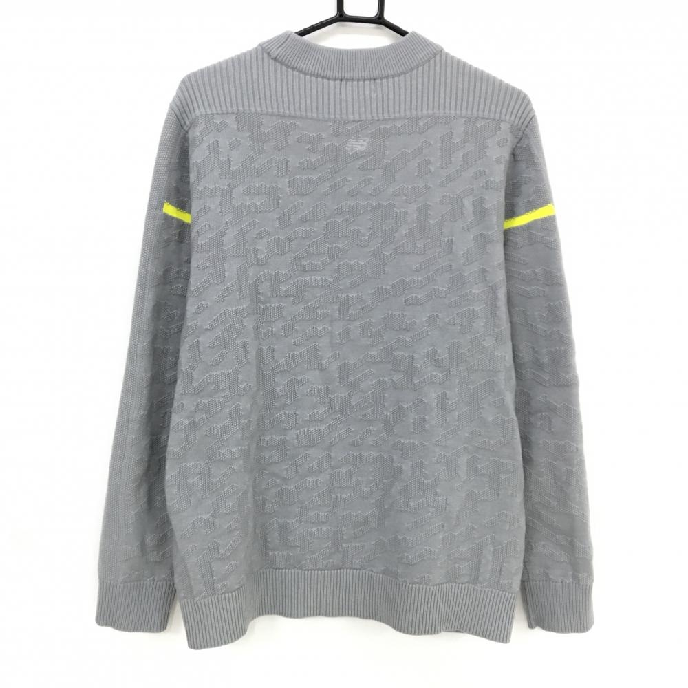 【美品】ニューバランスゴルフ セーター グレー×イエロー 総柄織生地 ジップポケット ニット メンズ 7(2XL) ゴルフウェア New Balance