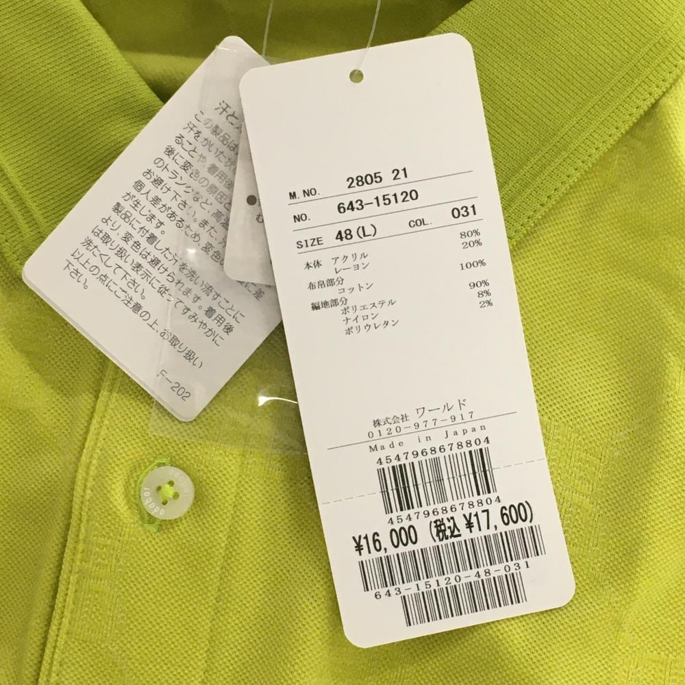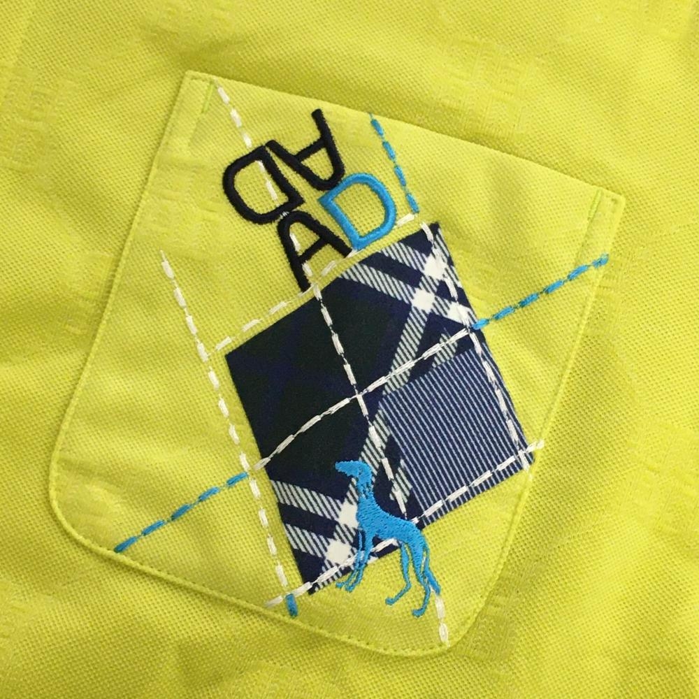 【新品】アダバット 長袖ポロシャツ グリーンイエロー 総柄地模様 メンズ 48(L) ゴルフウェア adabat