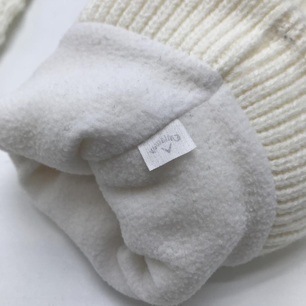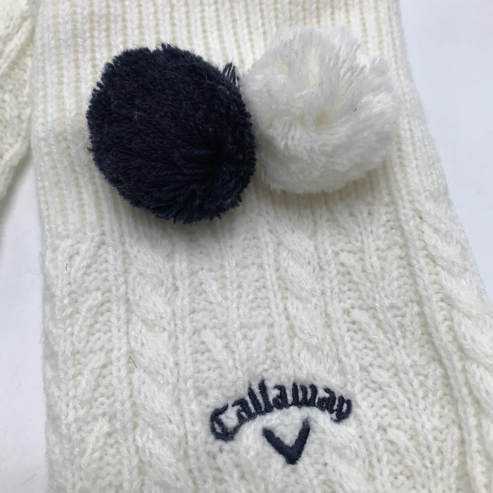 【超美品】キャロウェイ ニットレッグウォーマー 白×ネイビー ボンボン付 裏起毛 レディース ゴルフウェア Callaway