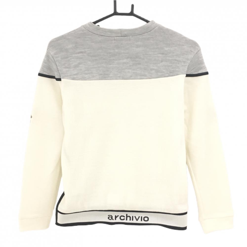 アルチビオ セーター 白×杢ライトグレー ニット ウール混 バイカラー レディース 38(M) ゴルフウェア archivio