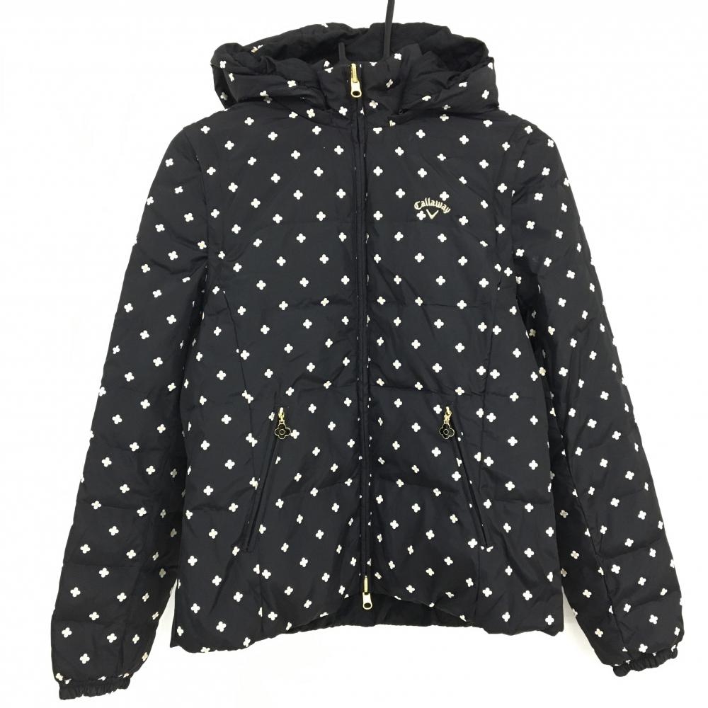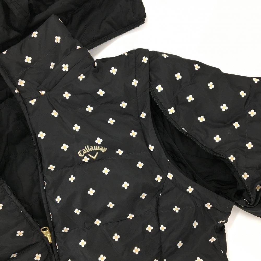 【超美品】キャロウェイ 6WAYリバーシブルダウンジャケット 黒×白 花柄 裏無地 フード袖着脱可 レディース M ゴルフウェア Callaway