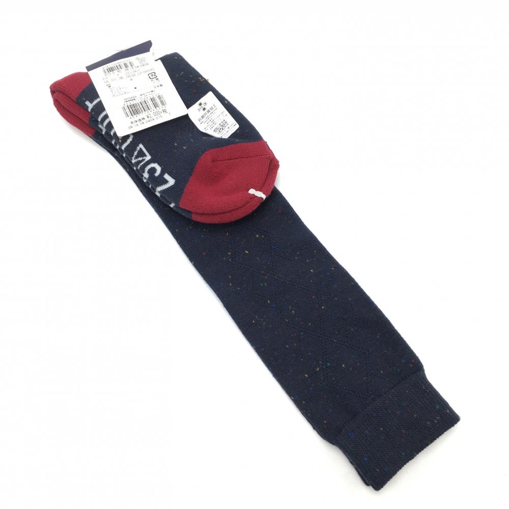 【新品】23区ゴルフ ハイソックス ネイビー×レッド ネップ調 レディース F(22-24cm) ゴルフウェア 23区