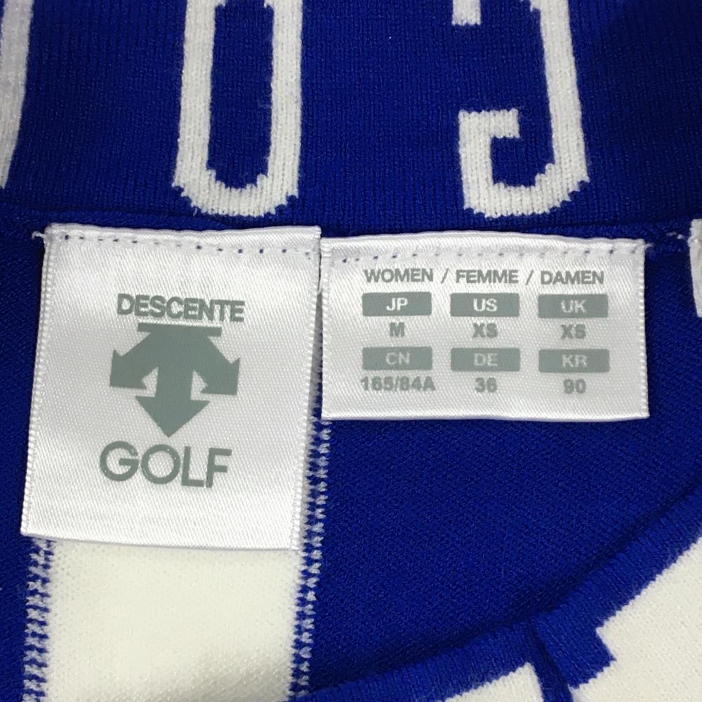 【超美品】デサントゴルフ ノースリーブニット ブルー×白 ネック・裾ロゴ 中田英寿 レディース M ゴルフウェア 2023年モデル DESCENTE