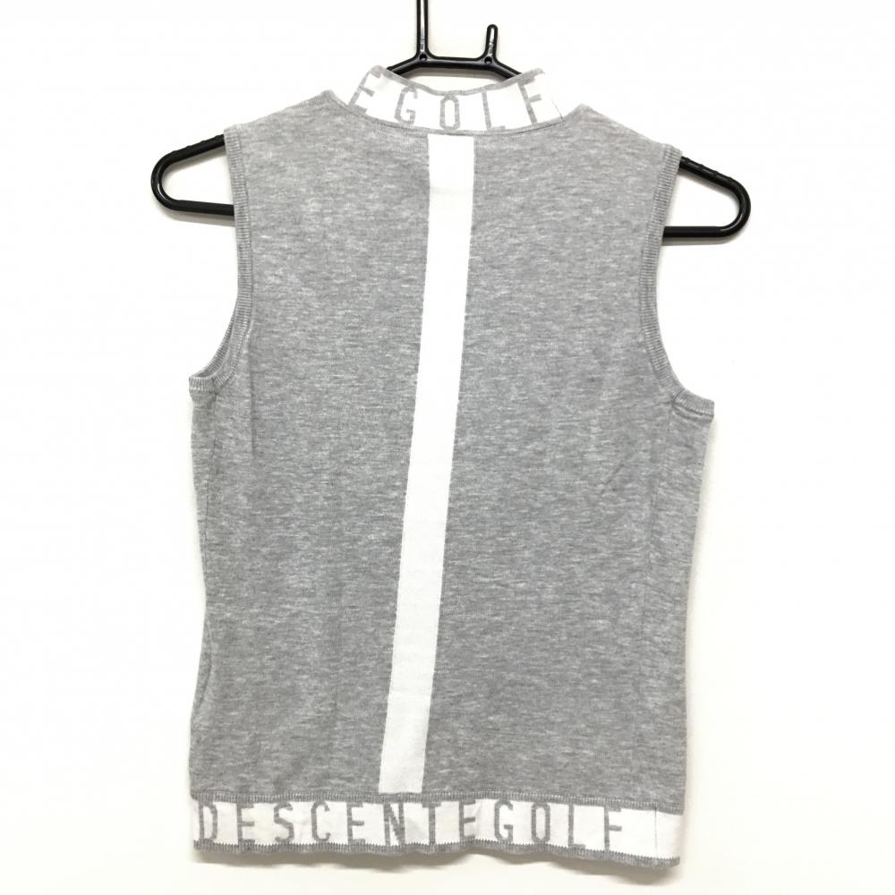 【超美品】デサントゴルフ ノースリーブニット 杢グレー×白 ネック・裾ロゴ 中田英寿 レディース M ゴルフウェア 2023年モデル DESCENTE