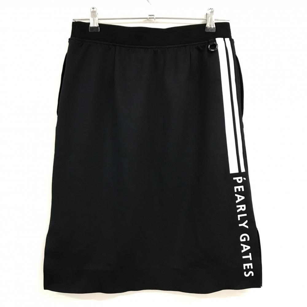 【美品】PGGパーリーゲイツ スカート ダークネイビー×白 ロゴプリント ウエストゴムロゴ レディース 1(M) ゴルフウェア PEARLY GATES