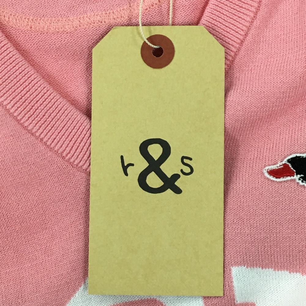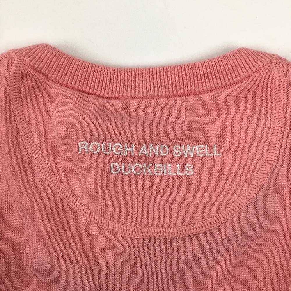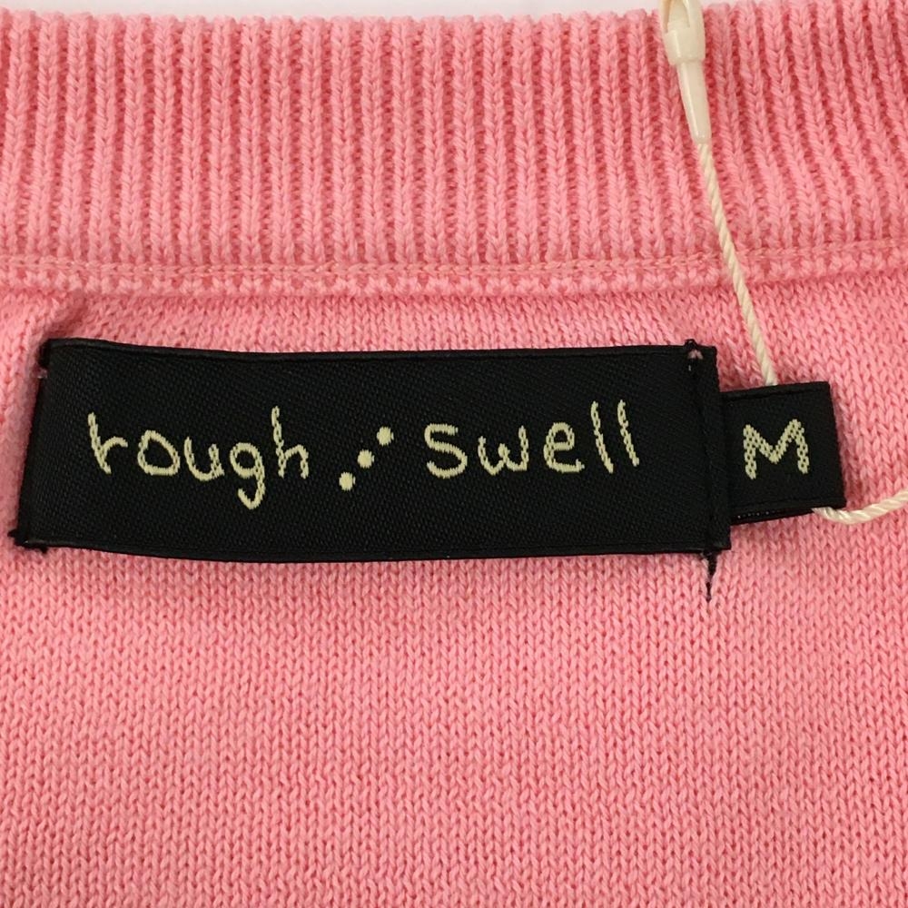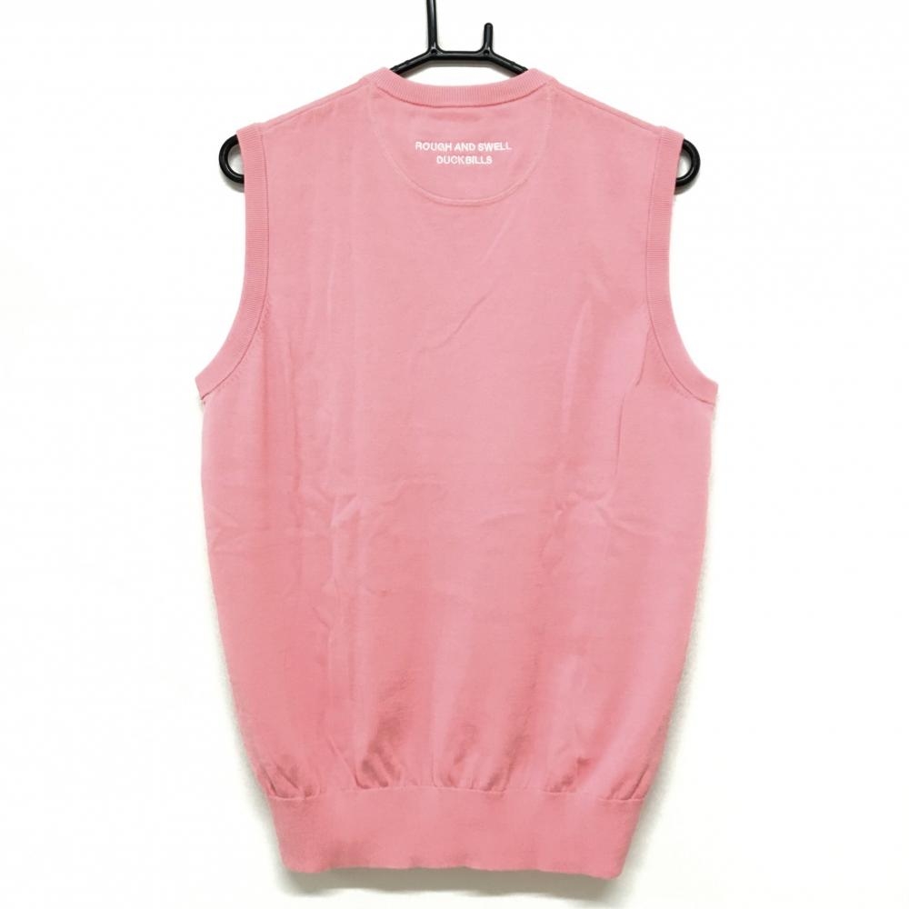 【新品】ラフアンドスウェル ニットベスト ピンク×白 フロント英字 コットン100% メンズ M ゴルフウェア 2023年モデル rough&swell