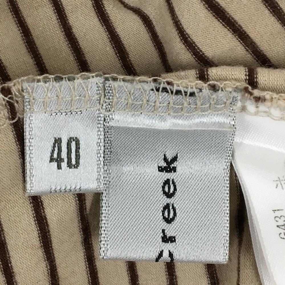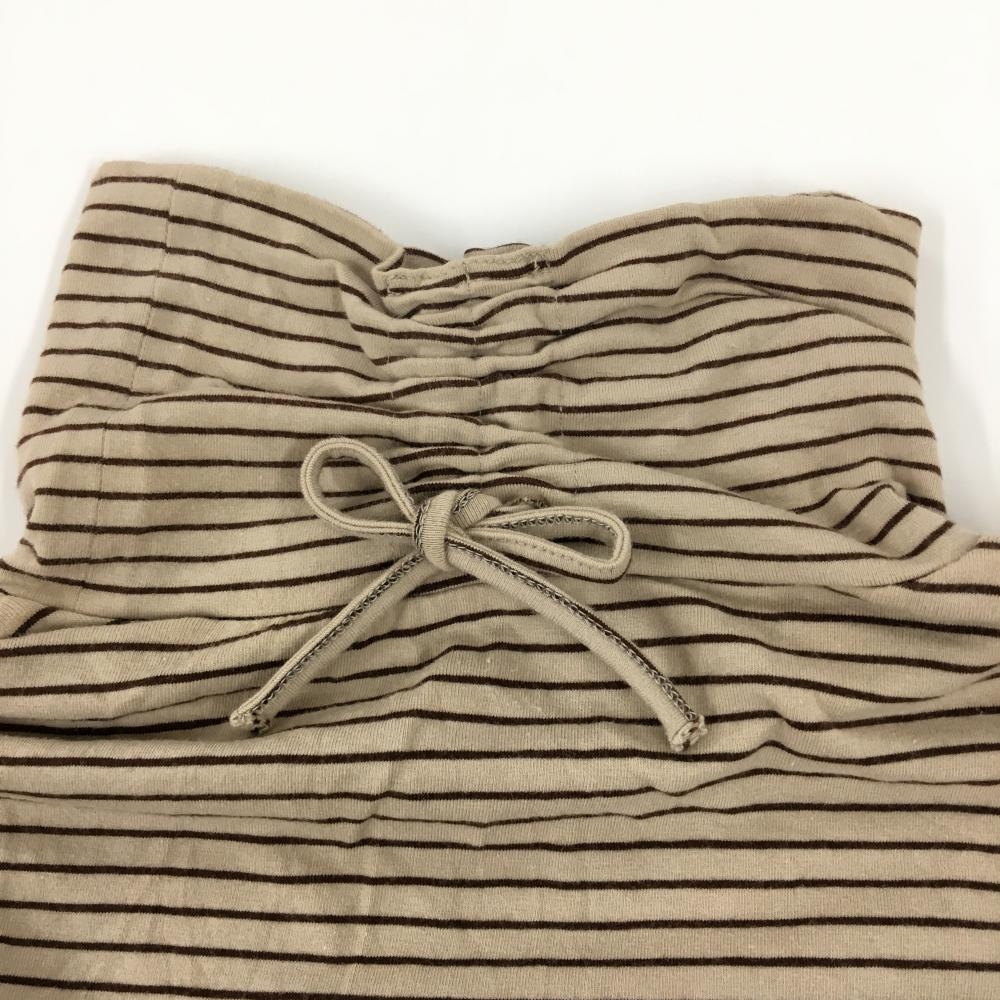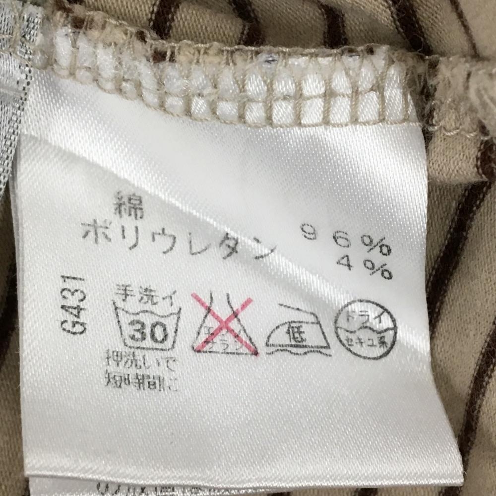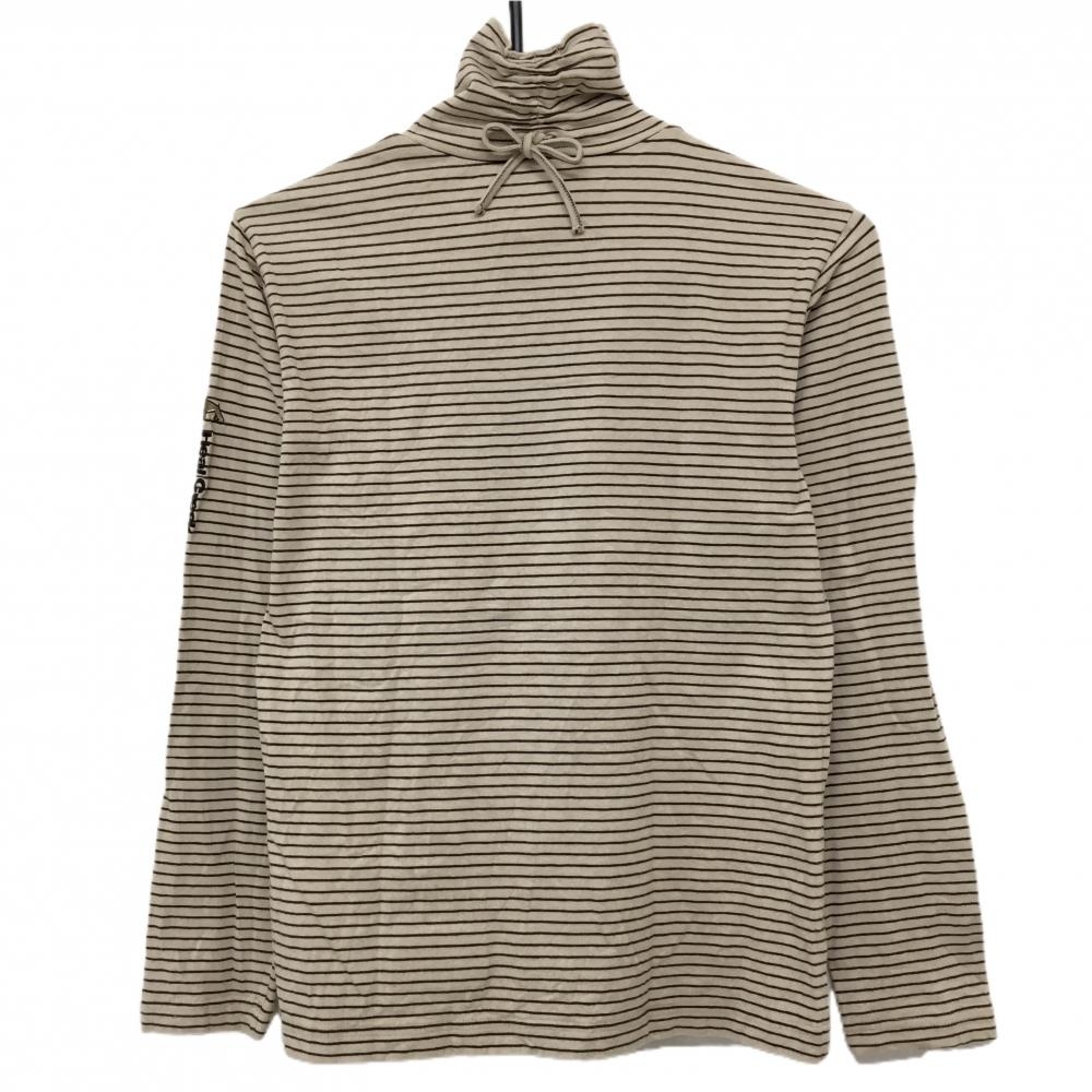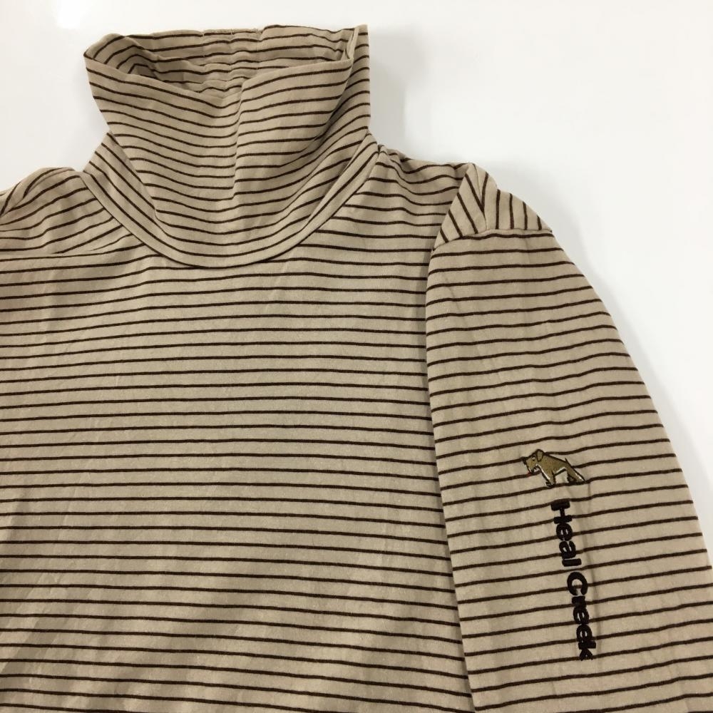 【美品】ヒールクリーク 長袖ハイネックシャツ ベージュ×ブラウン 細ボーダー ストレッチ レディース 40(M) ゴルフウェア Heal Creek