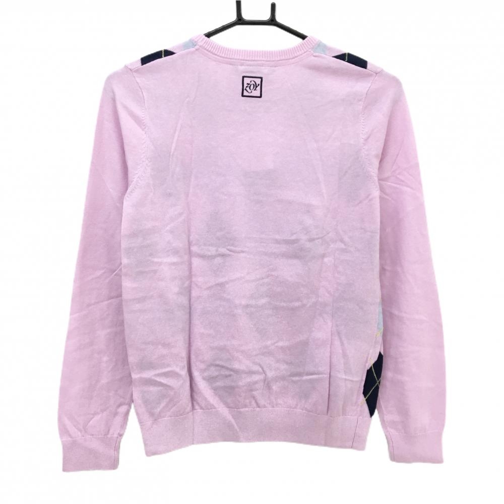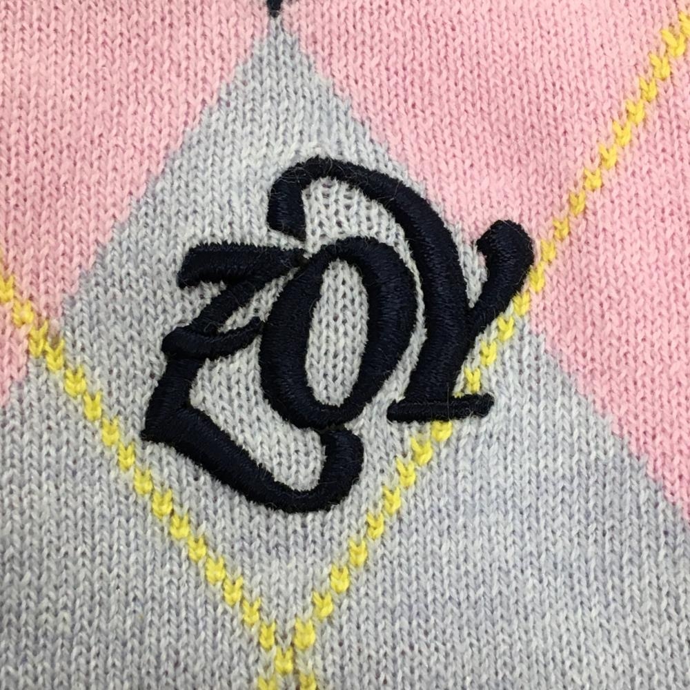 【新品】ゾーイ セーター ピンク×ネイビー イエロー アーガイル ニット レディース 38(M) ゴルフウェア ZOY