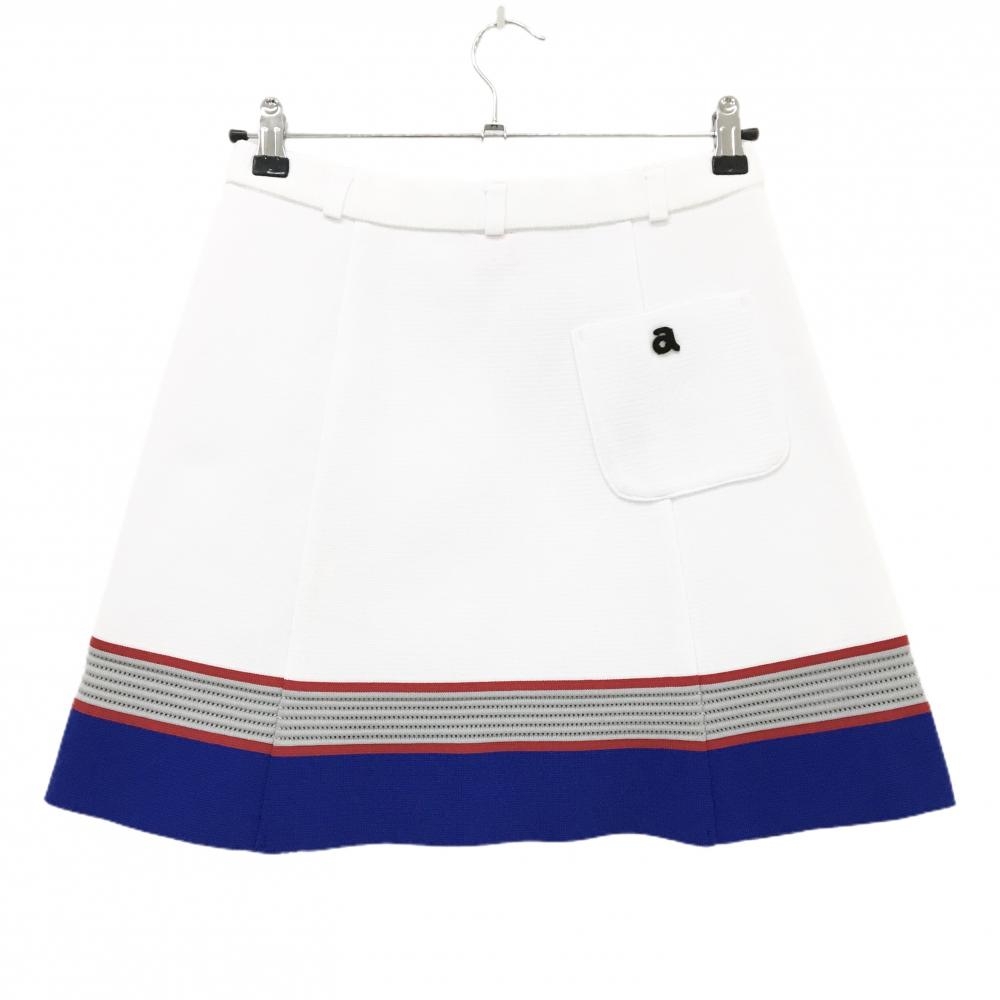 アルチビオ ニットスカート 白×ブルー 裾ボーダー ストレッチ レディース 38(M) ゴルフウェア archivio