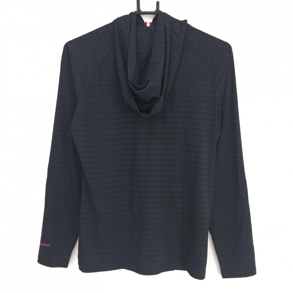 【美品】アンダーアーマー ジップパーカー 黒×ピンク ボーダー地模様 ブルゾン レディース LG ゴルフウェア UNDER ARMOUR