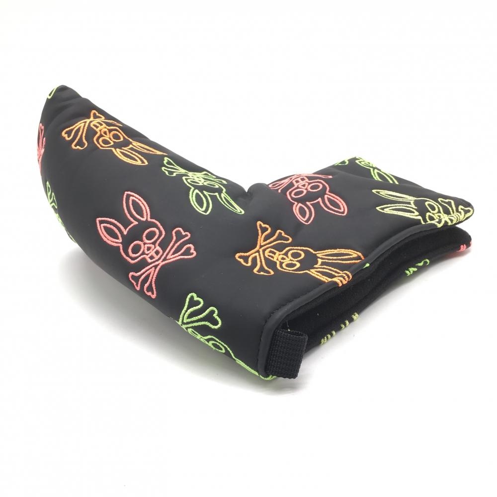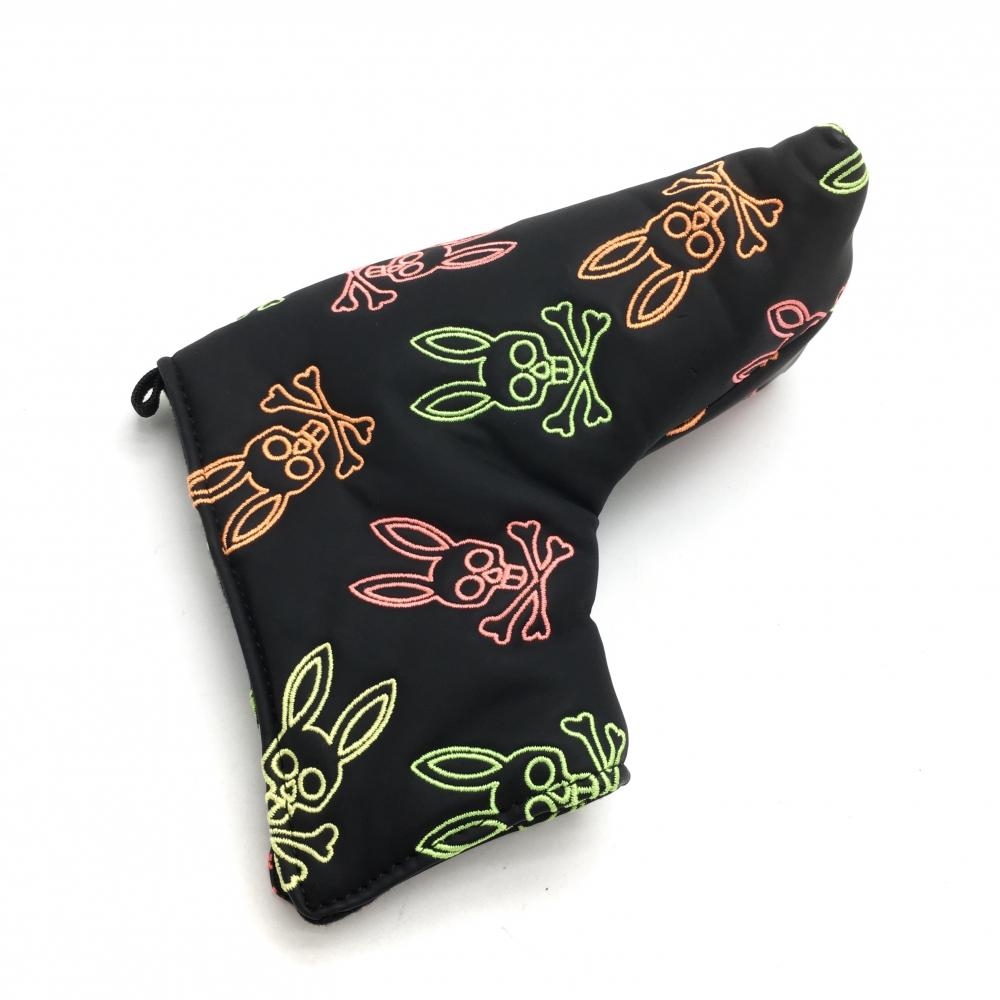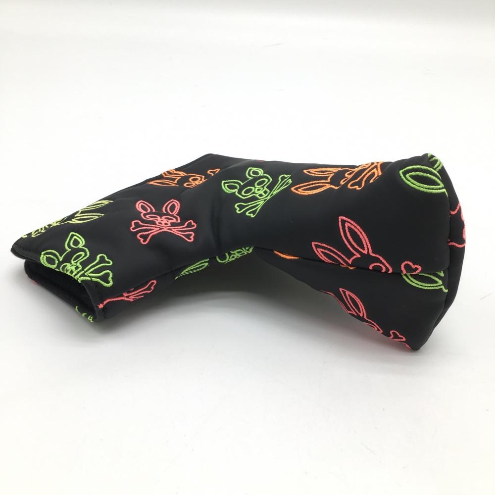 【美品】サイコバニー パターカバー 黒×蛍光グリーン 総柄 ピン型ゴルフ Psycho Bunny