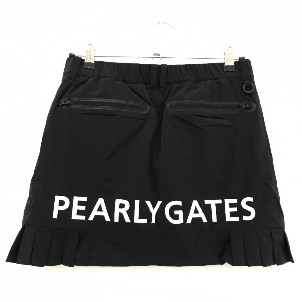 【美品】パーリーゲイツ スカート 黒×白 ロゴプリント 一部プリーツ バックロゴ レディース 1(M) ゴルフウェア PEARLY GATES