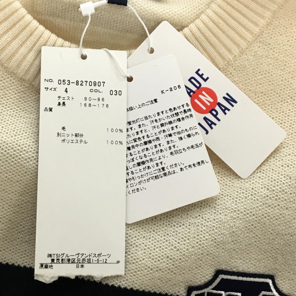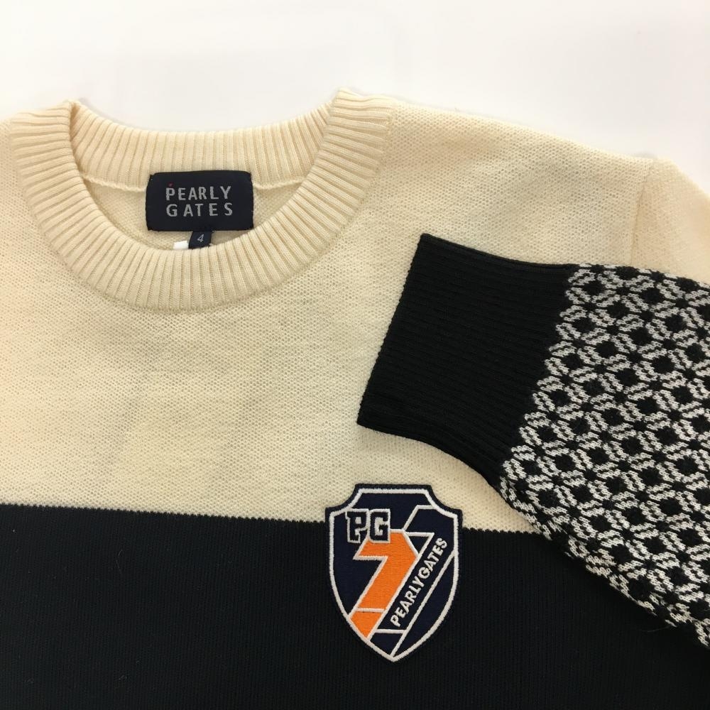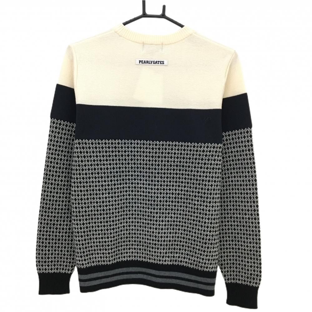 【新品】パーリーゲイツ セーター ネイビー×アイボリー×白系 一部柄 異素材切替 ウール100% メンズ 4(M) ゴルフウェア PEARLY GATES