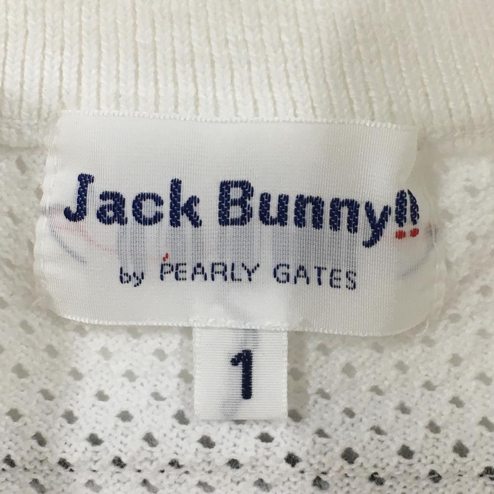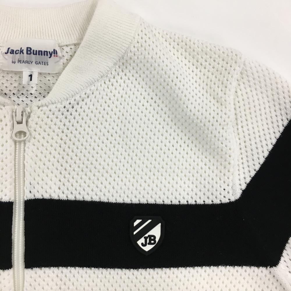【美品】ジャックバニー ニットジャケット 白×黒 メッシュ調 胸ロゴ レディース 1(M) ゴルフウェア Jack Bunny